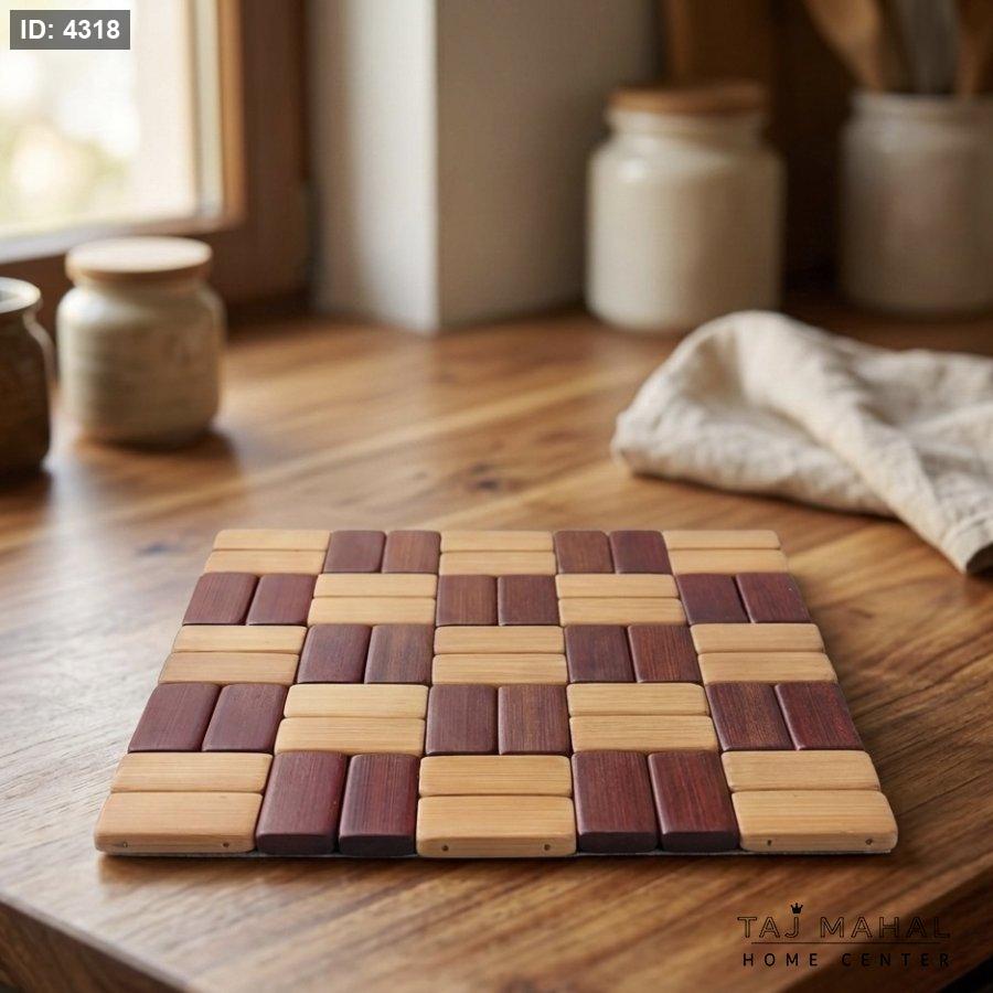 كوستر خشب بامبو بتصميم شطرنجي