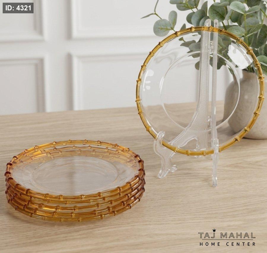 طقم صحون زجاج دائري بإطار عسلي 6 قطع