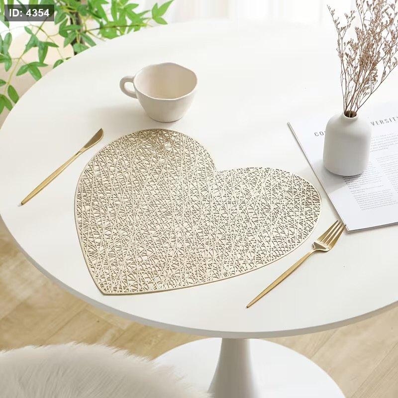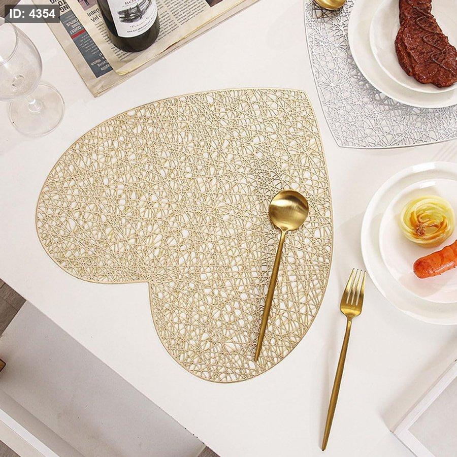 مفرش طاولة ذهبي على شكل قلب 4 قطع