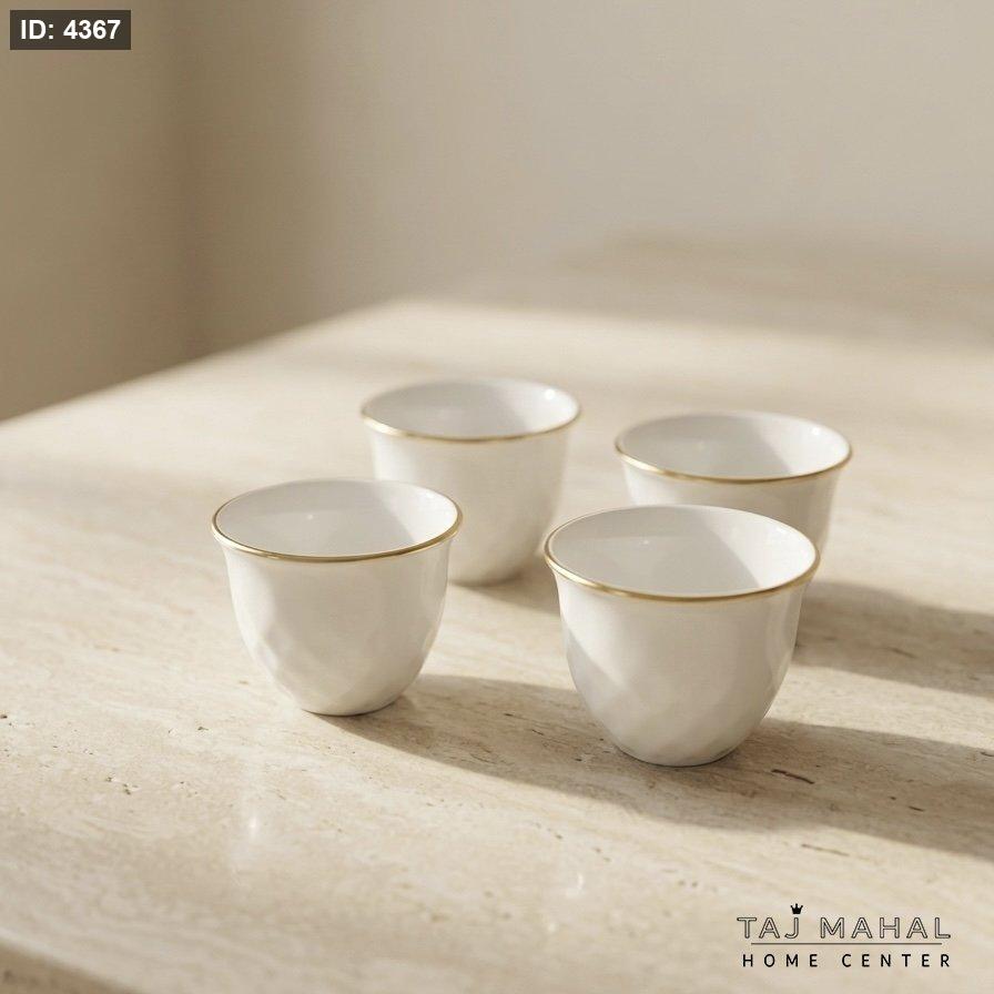 طقم فناجين قهوة سادة بورسلان ابيض وحافة ذهبية