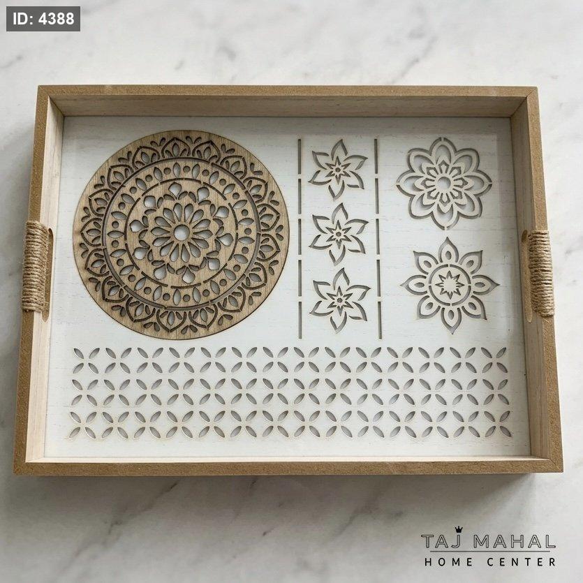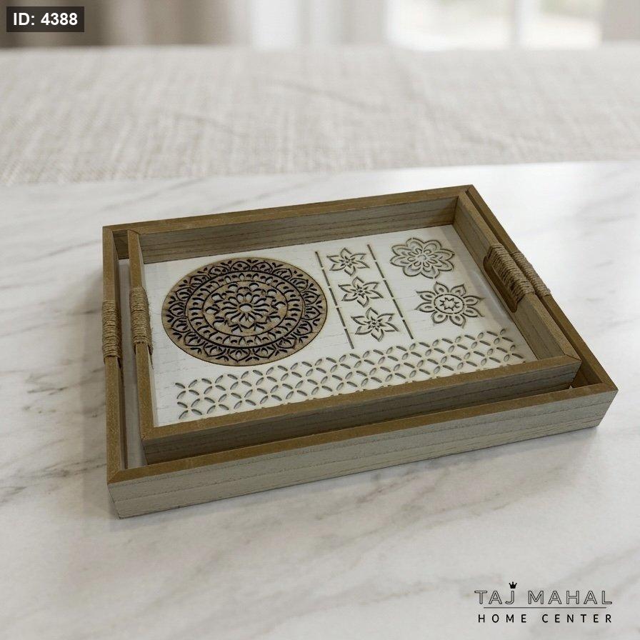 طقم صواني تقديم خشبية بنقوش CNC وقاعدة أكريليك