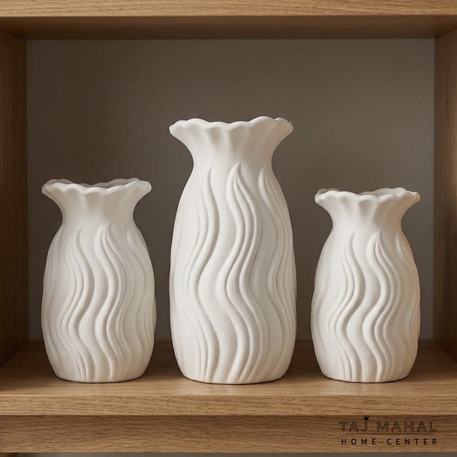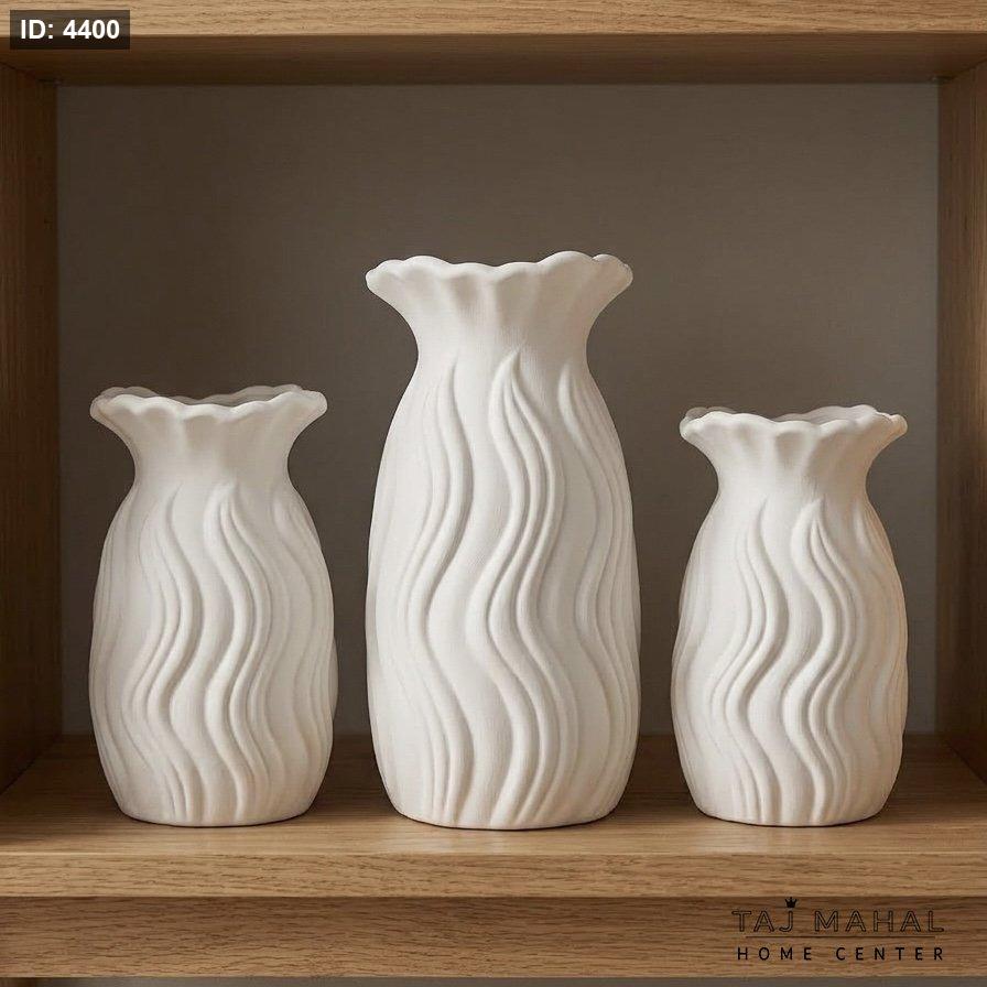 طقم تحف سيراميك أبيض بتصميم مموج
