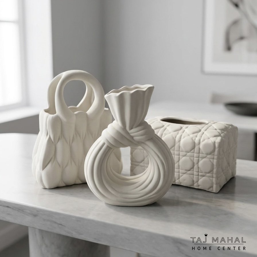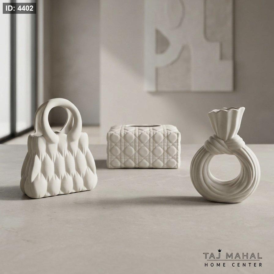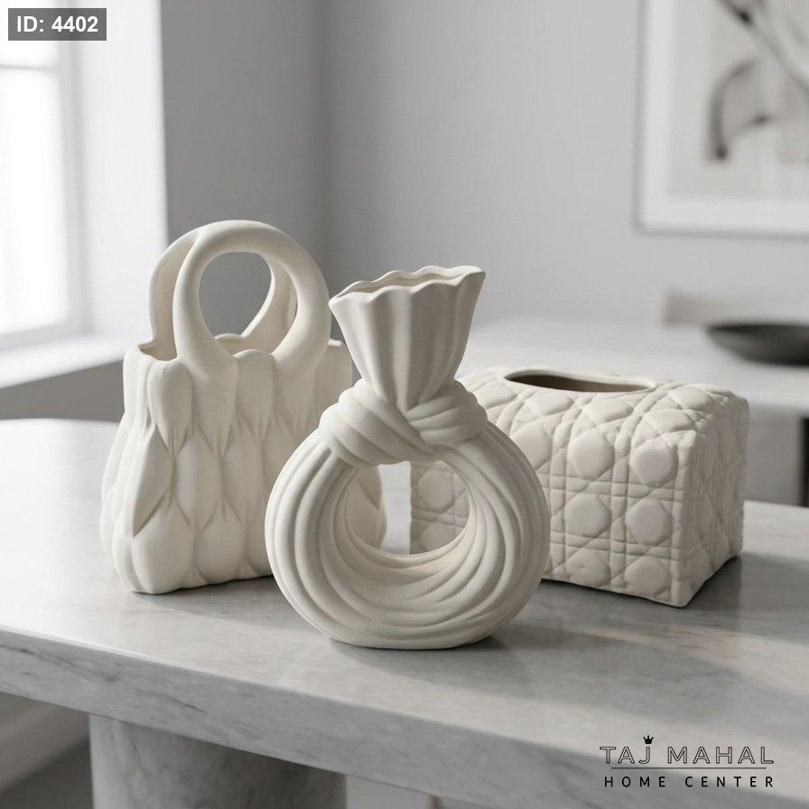 طقم تحف سيراميك ابيض بتصاميم مميزة