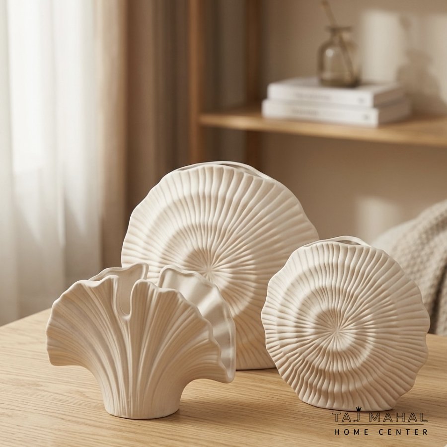 طقم تحف سيراميك ابيض بتصاميم مميزة
