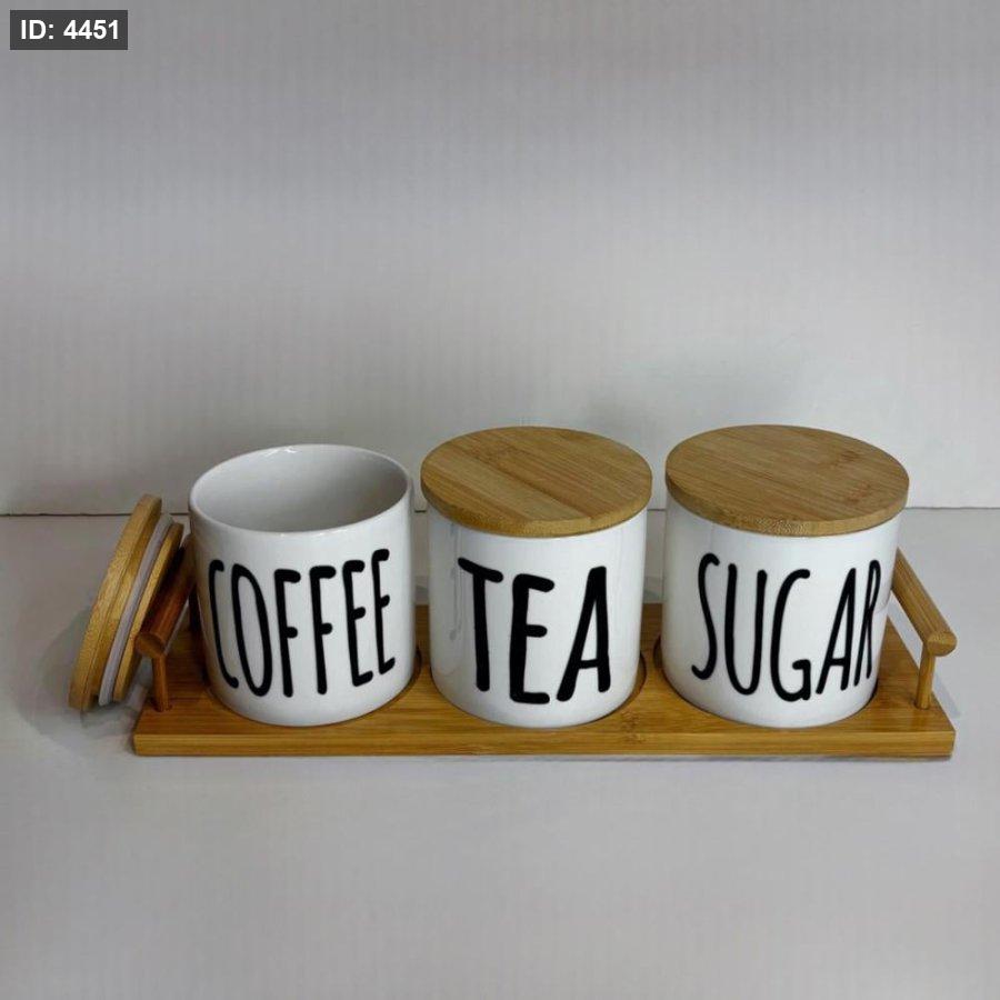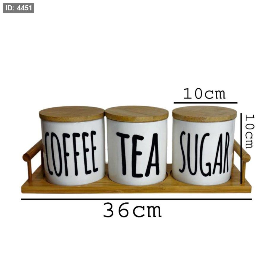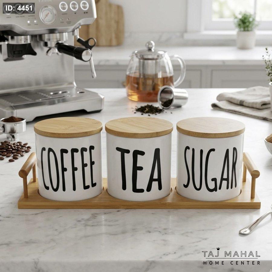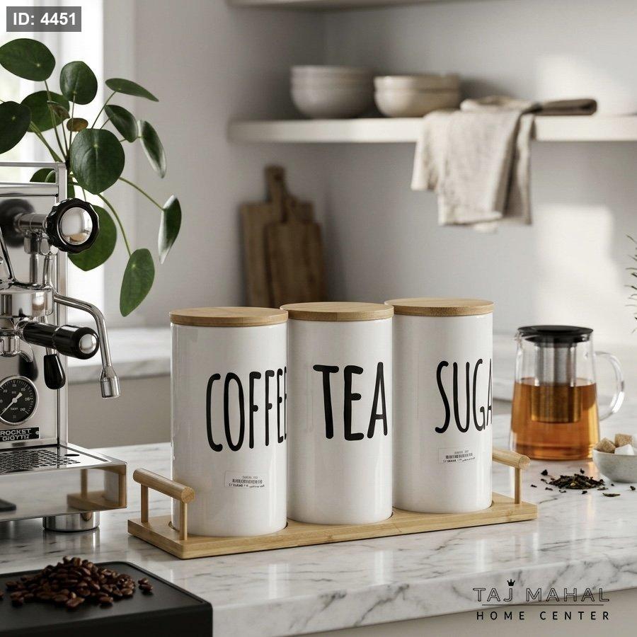 أضف لمسة من الرقي العصري إلى مطبخك مع طقم تخزين (السكر، الشاي، القهوة) الذي يجمع بين نقاء البورسلين ودفء خشب البامبو.