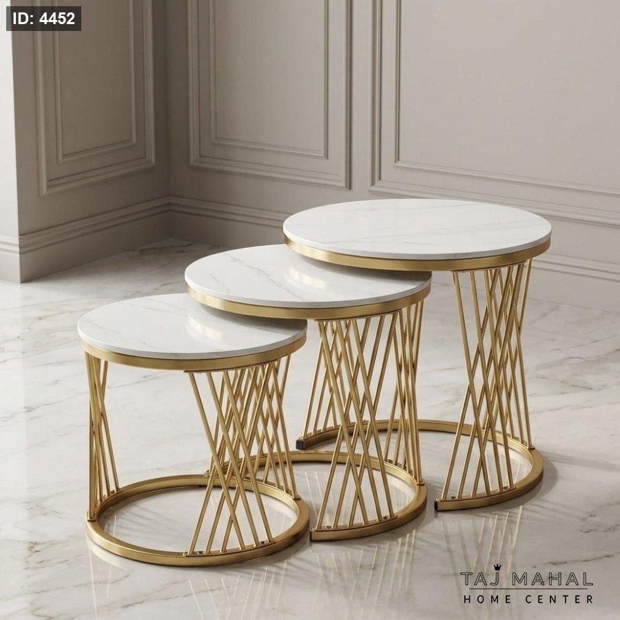 طقم ٣ اسكملات تقديم متداخلة من الجرانيت والمعدن