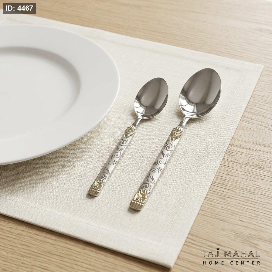 طقم معالق ستانلس ستيل بتصميم إيطالي بنقوش تجمع اللونين الفضي والذهبي 6 قطع