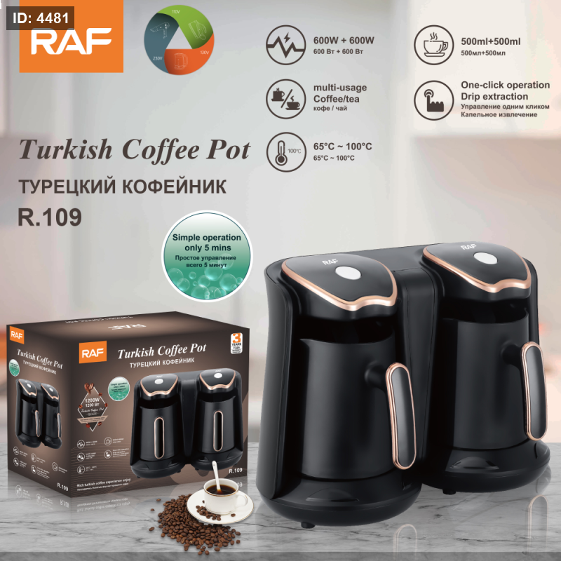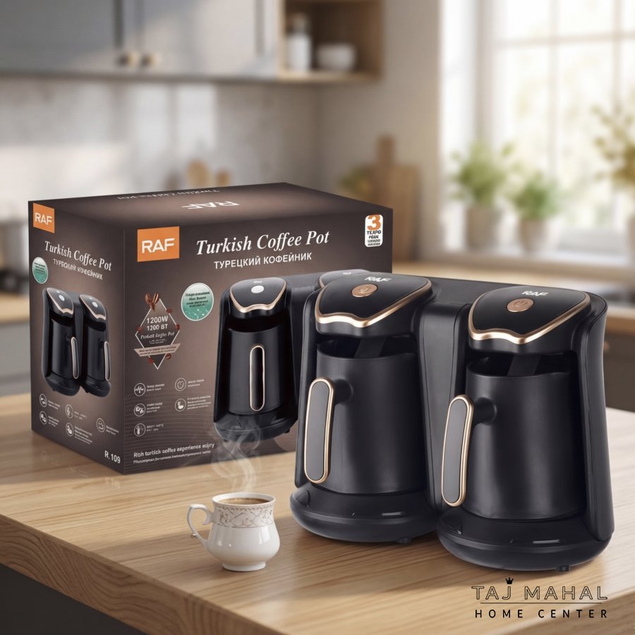 استمتع بمذاق القهوة التركية الأصيلة بلمسة عصرية مع ماكينة RAF المزدوجة. صُممت هذه الماكينة لتلبية احتياجات عشاق القهوة، حيث تتيح لك تحضير وعائين في وقت واحد بكل سهولة وسرعة، مما يجعلها مثالية للجمعات العائلية أو بيئة العمل.