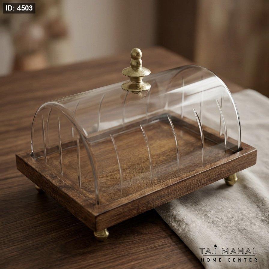 المواد: خشب طبيعي عالي الجودة + زجاج شفاف + معدن مطلي بالذهبي.