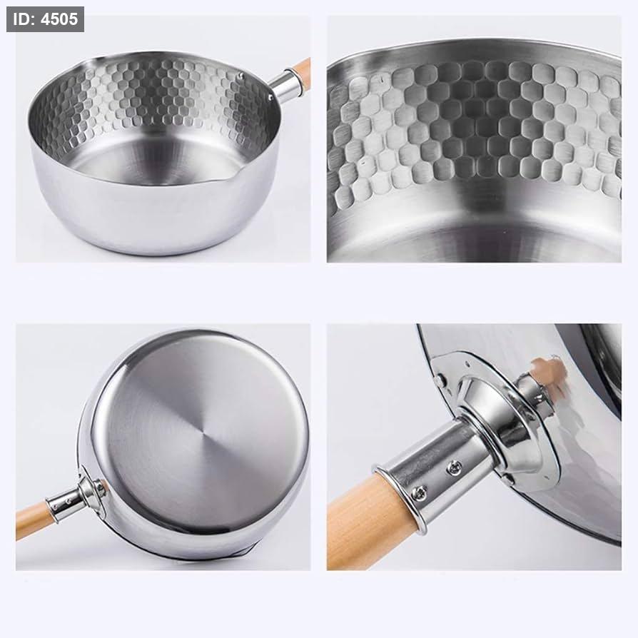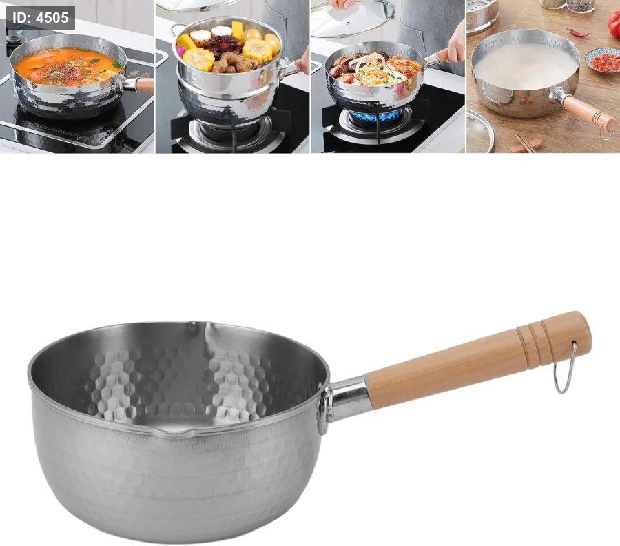 يجمع هذا القدر (Yukihira) بين العراقة اليابانية والأداء العصري؛ حيث يتميز بسطح مطروق (Hammered) يوزع الحرارة بفعالية ويمنع فوار السوائل المفاجئ. مصنوع من الفولاذ المقاوم للصدأ عالي الجودة مع مقبض خشبي مريح يحمي يديك من الحرارة، بالإضافة إلى فتحات صب مزدوجة تجعل استخدامه سهلاً وسلساً.