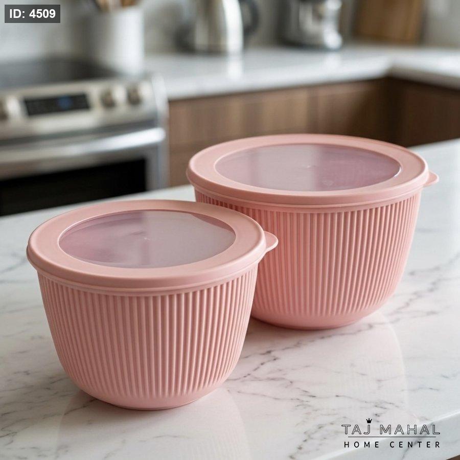 طقم علب تبروير لحفظ الطعام بغطاء سيليكون مدور بلون وردي