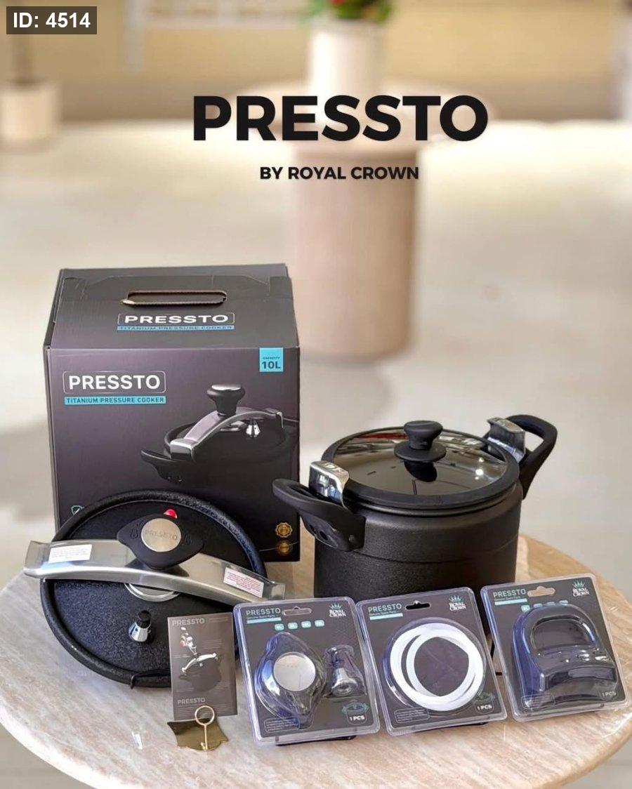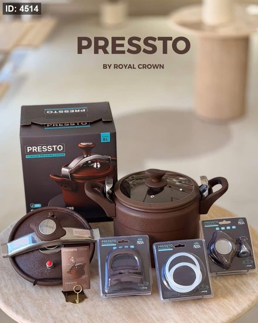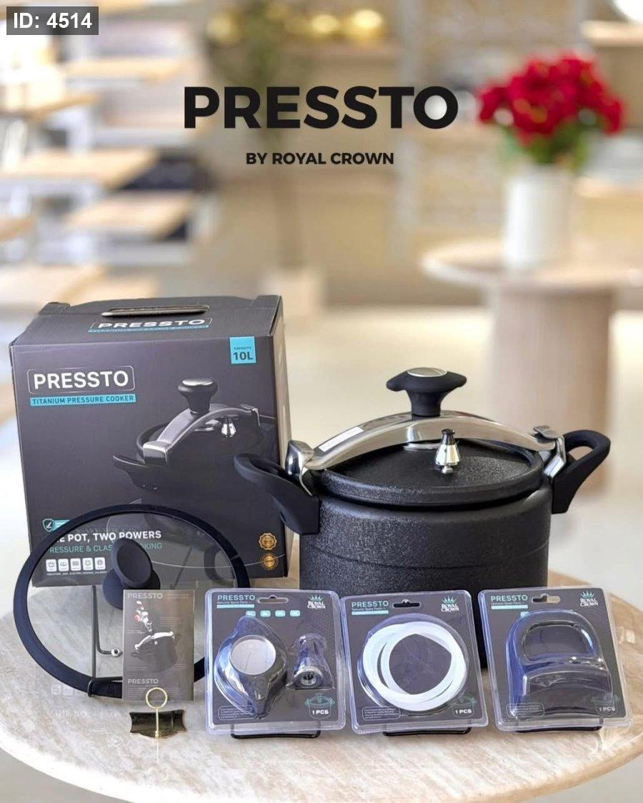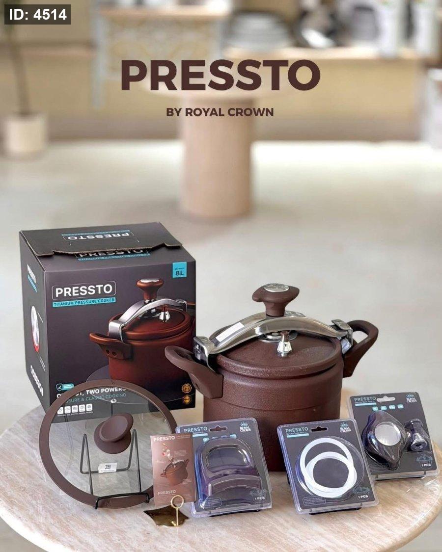 طنجرة الضغط الذكية 2 في 1 "Pressto Titanium" من رويال كراون - طقم متكامل مع قطع غيار إضافية