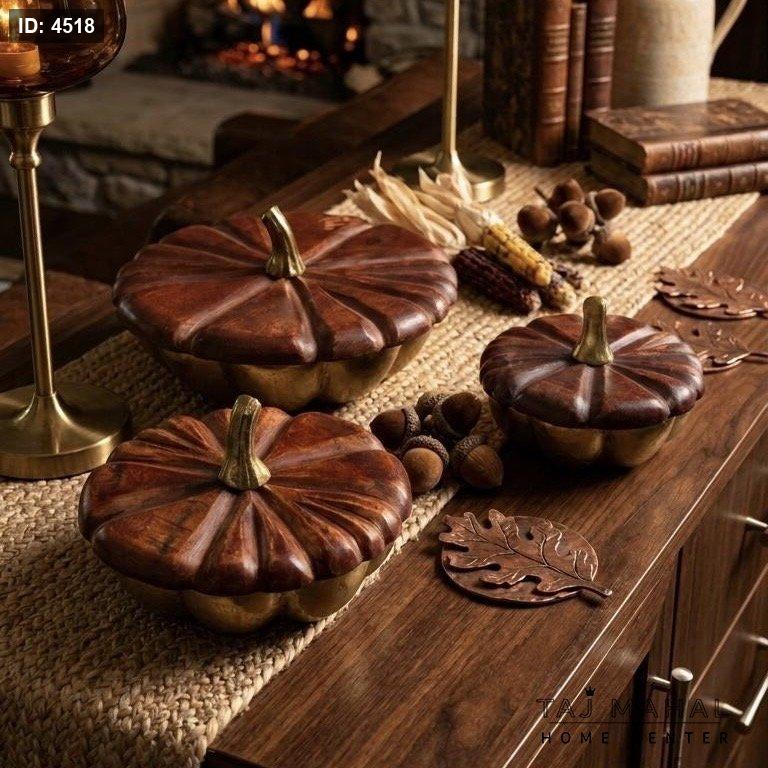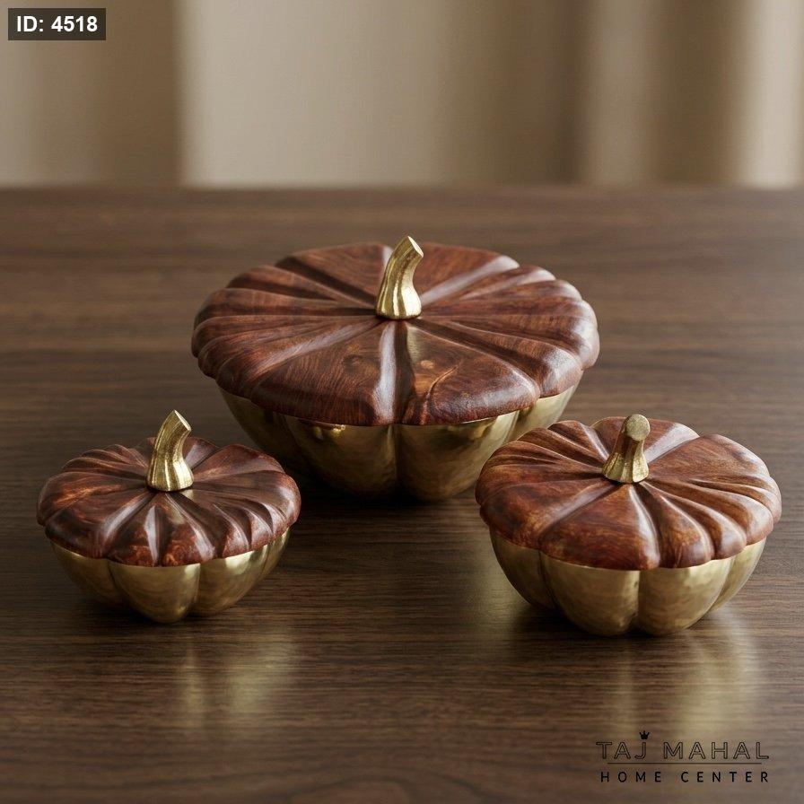 طقم مضايف خشب هندي على شكل يقطين ٣ قطع