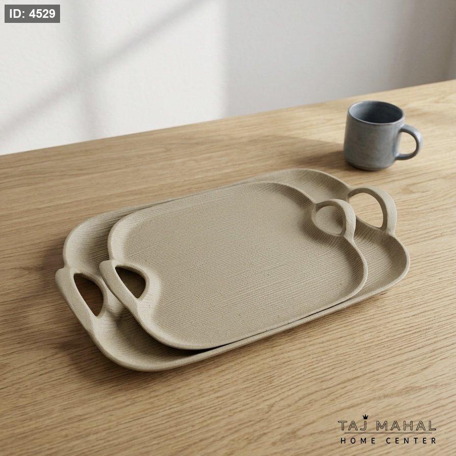 طقم صواني تقديم ألمنيوم بلون بيج رملي