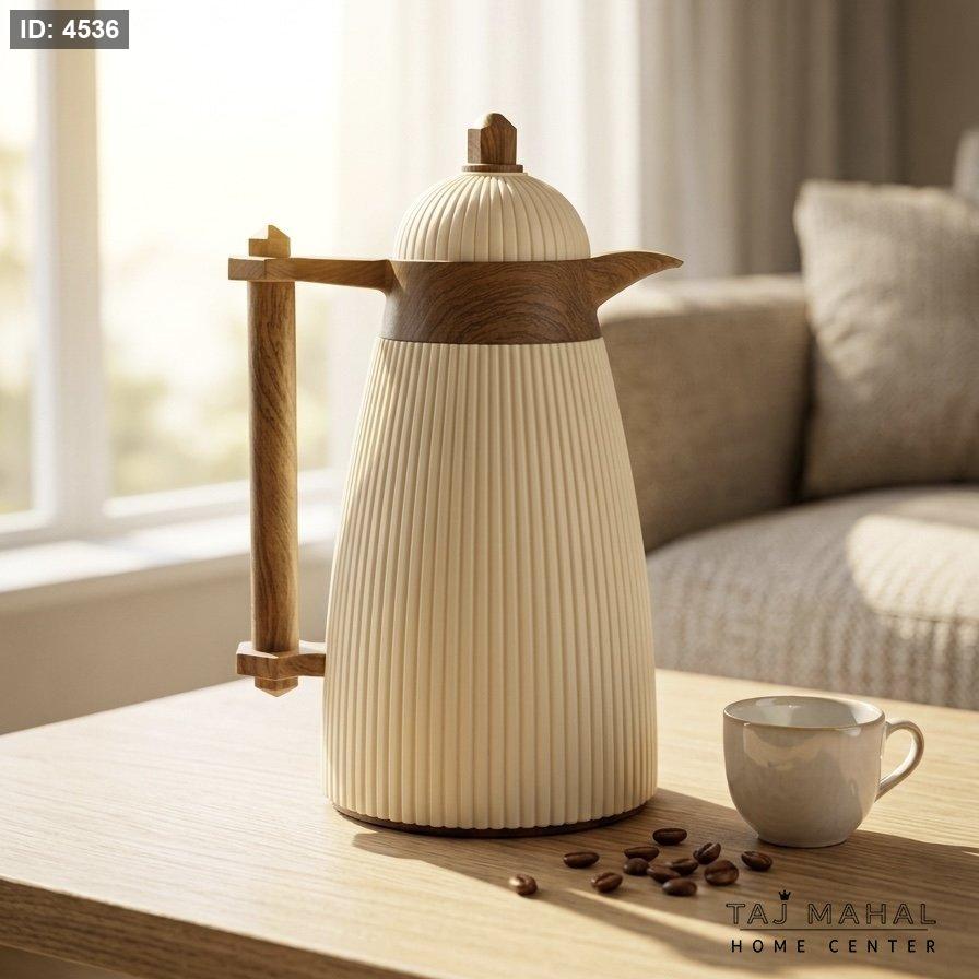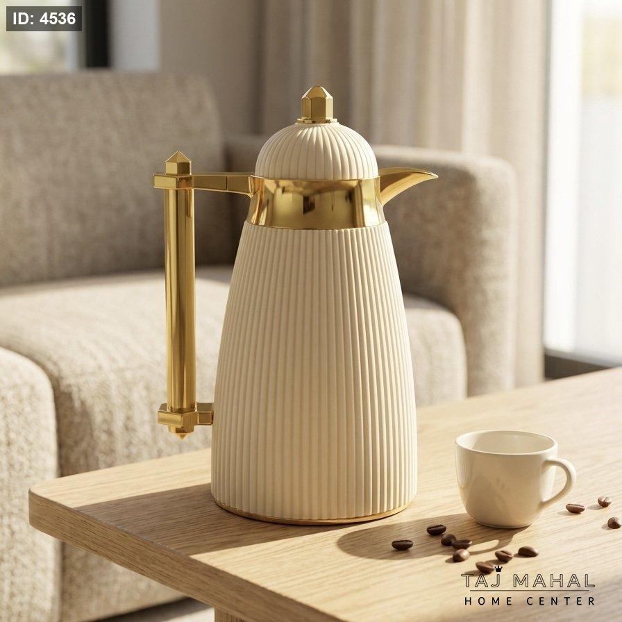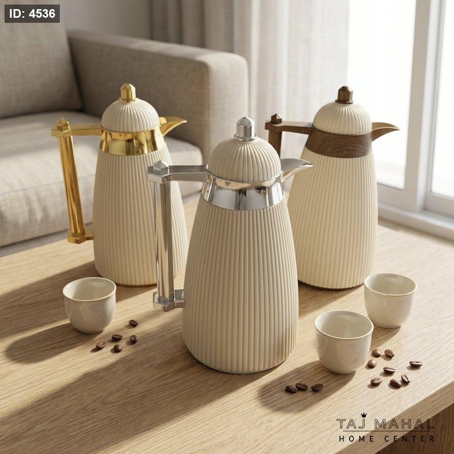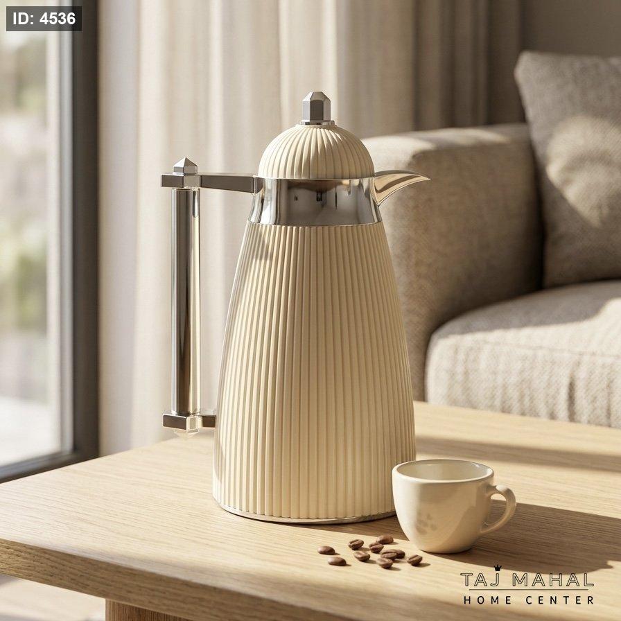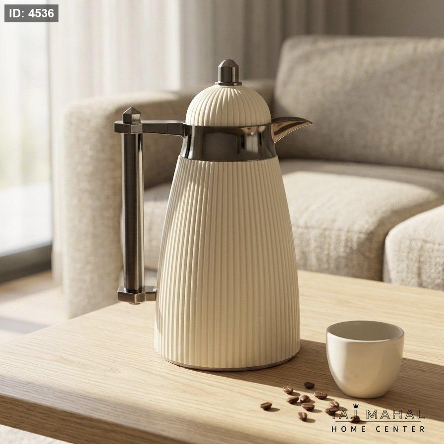 تيرموس قهوة بلاستيك بلون بيج مخطط