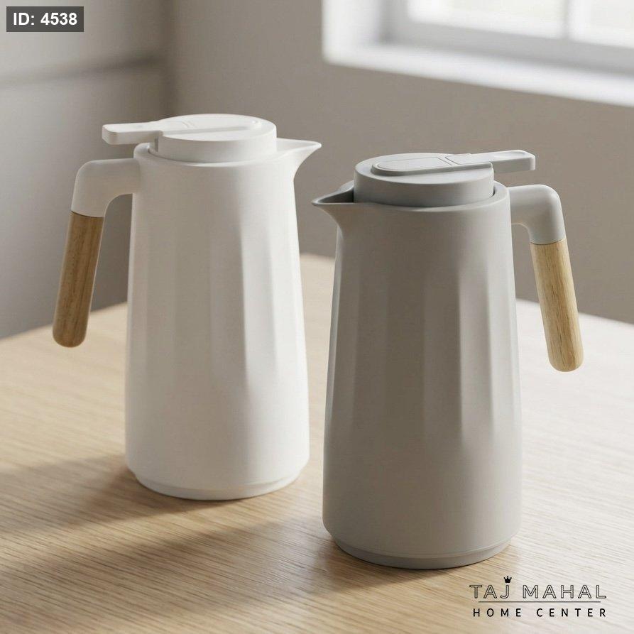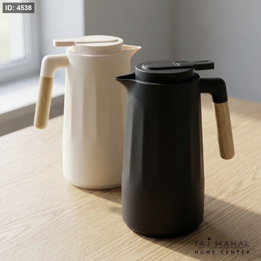 تيرموس قهوة وشاي بلاستيك مع يد خشبية