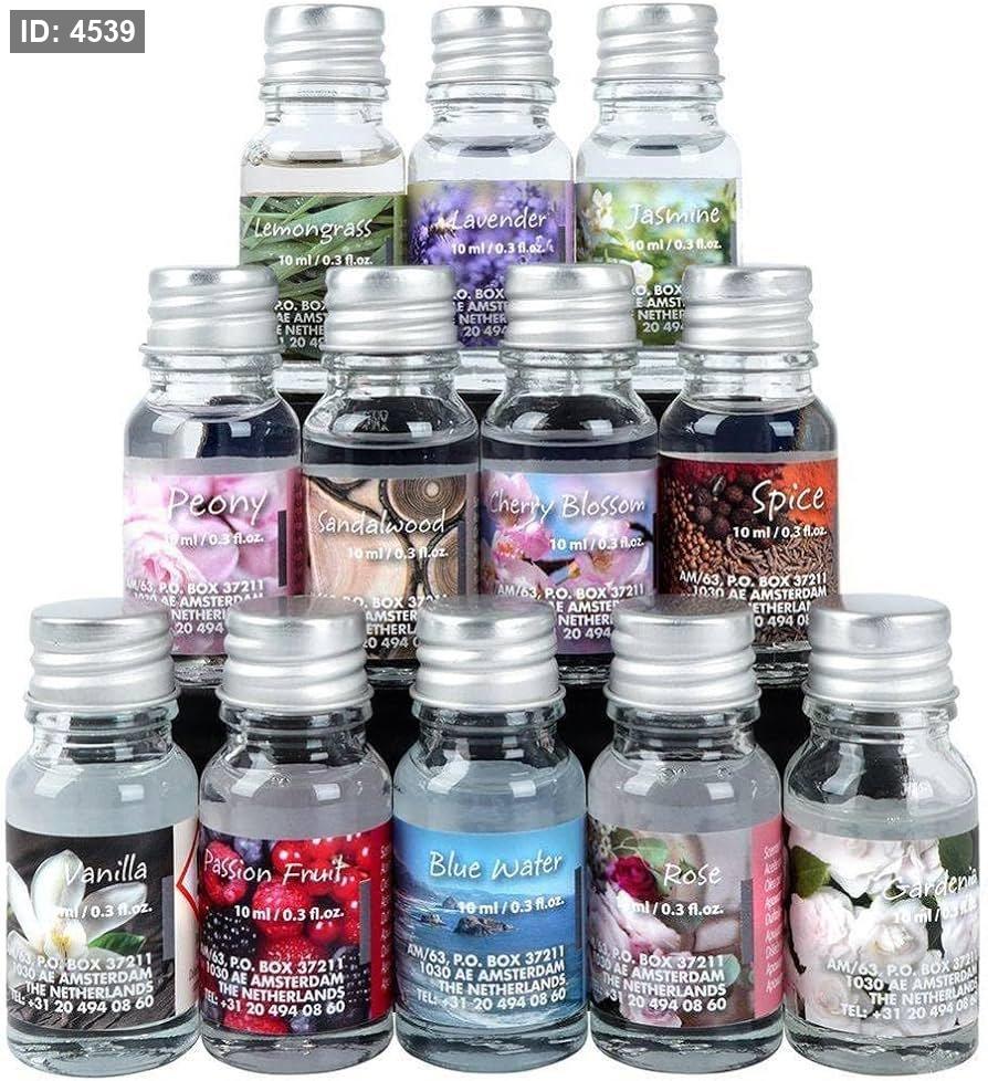 12 زجاجة زيت عطري متنوعة: تشكيلة غنية تضم روائح (الياسمين، الورد، اللافندر، الفاوانيا، الغاردينيا، المياه الزرقاء، التوابل، عشب الليمون، خشب الصندل، زهر الكرز، الفانيليا، وفاكهة العاطفة).