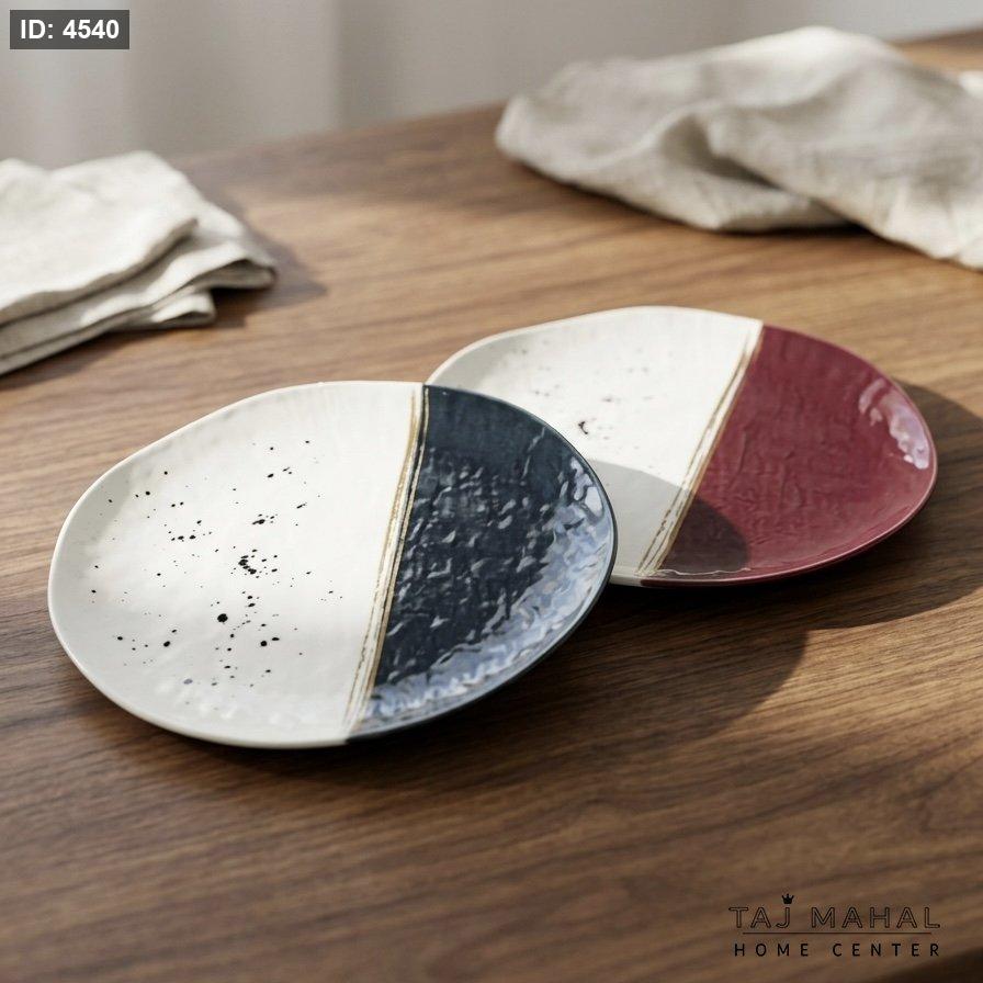 أضيفي لمسة فنية عصرية لمائدتك مع هذا الطقم الفريد الذي يدمج بين النمط المنقط الكلاسيكي والألوان السادة العميقة في تصميم "نصف ونصف" مبتكر.