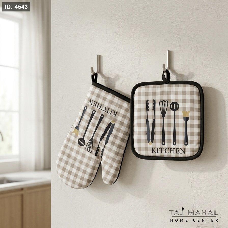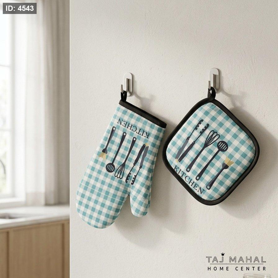 طقم قفازات مطبخ عازلة للحرارة بتصميم كروهات مع رسومات أدوات مطبخ