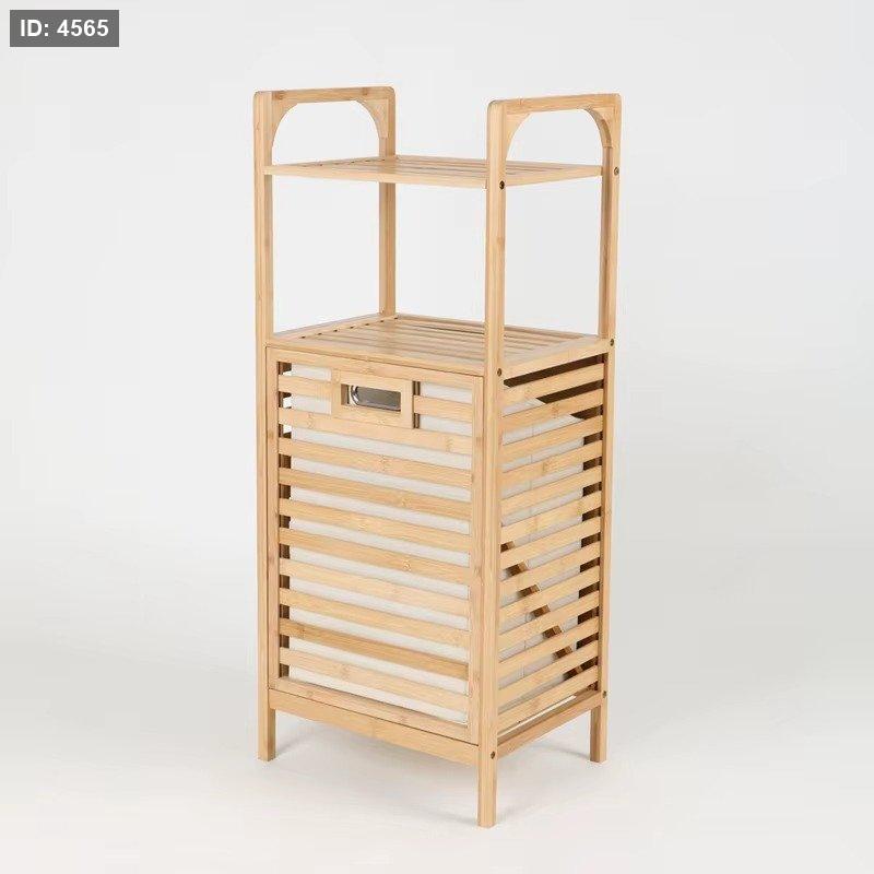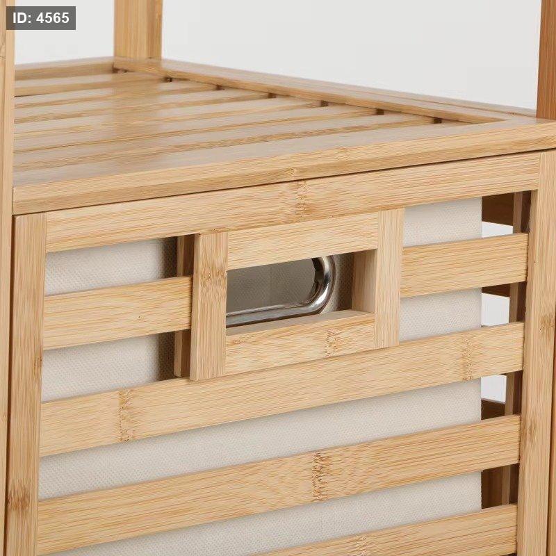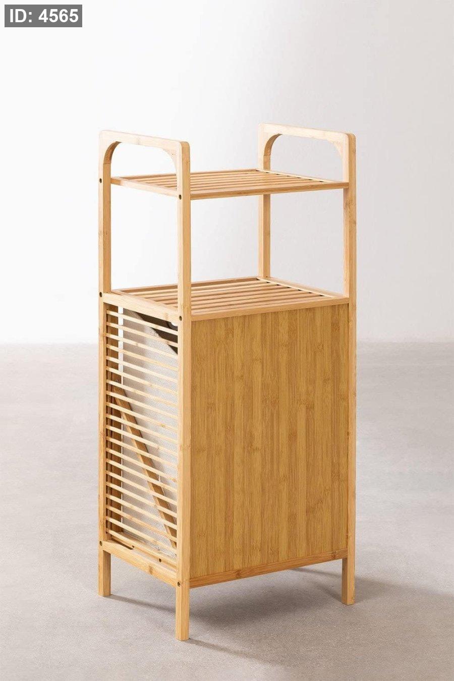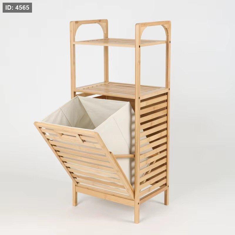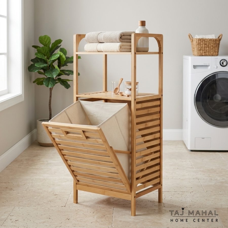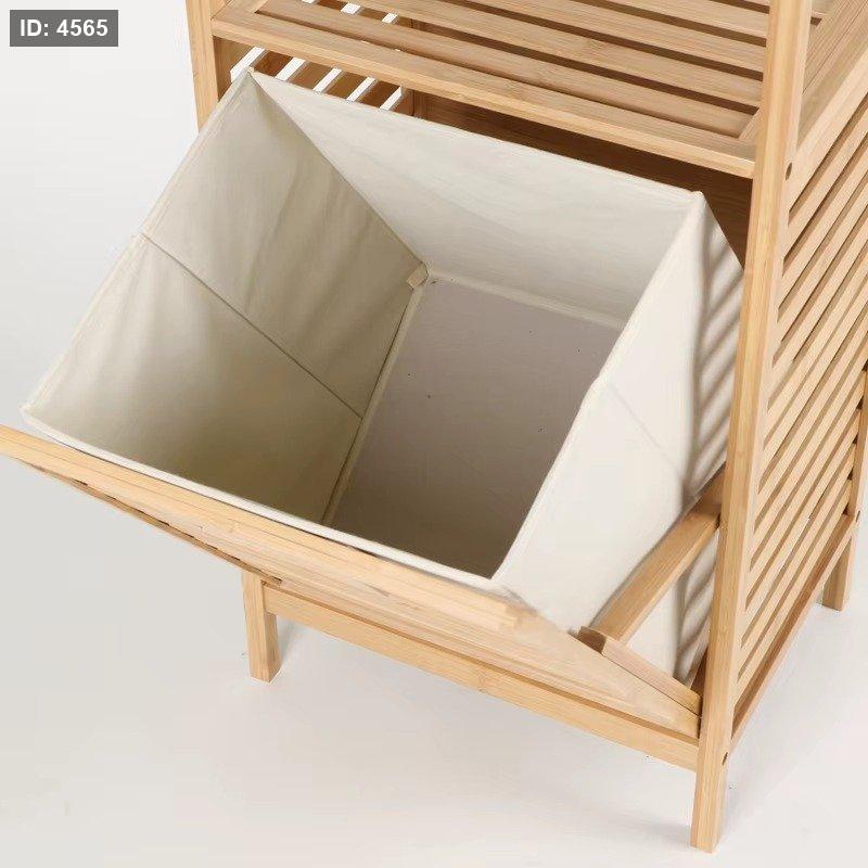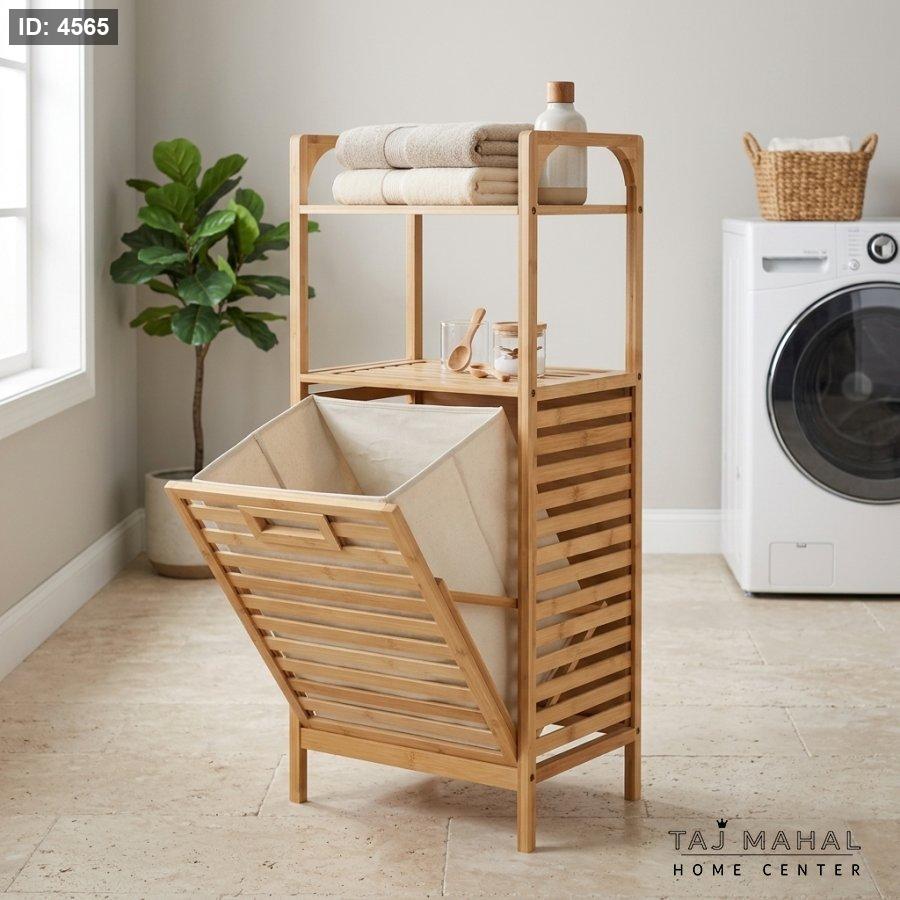 سلة غسيل من خشب البامبو الطبيعي مع رفوف تنظيم