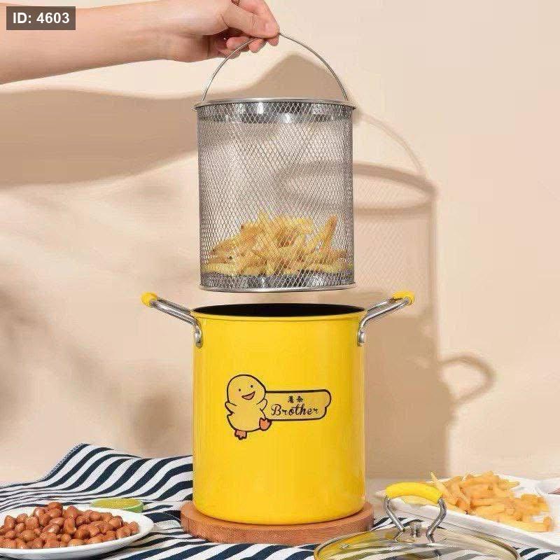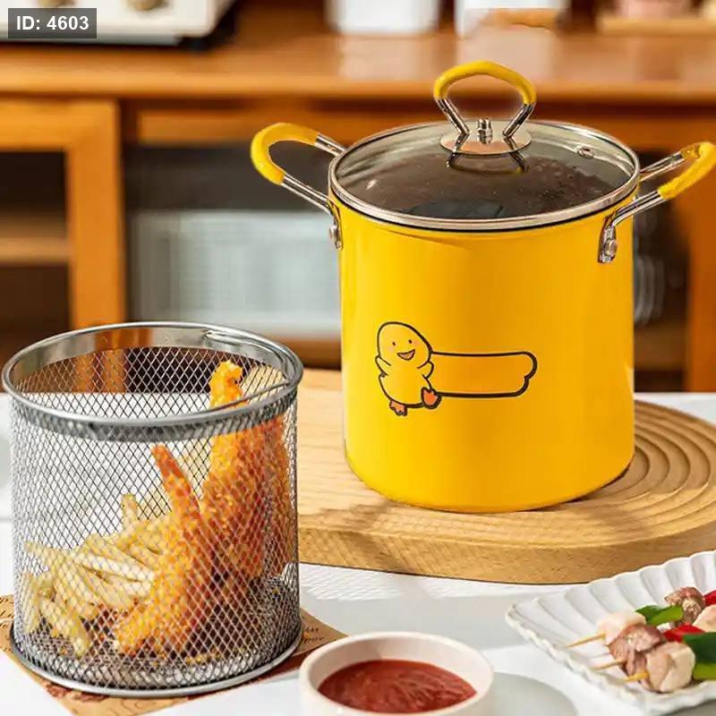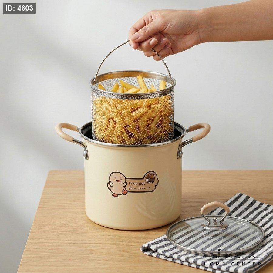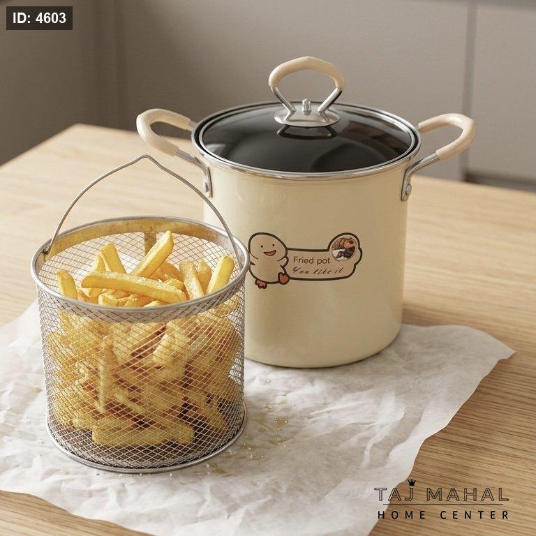 طنجرة قلي عميقة مع سلة شبكية ستانلس