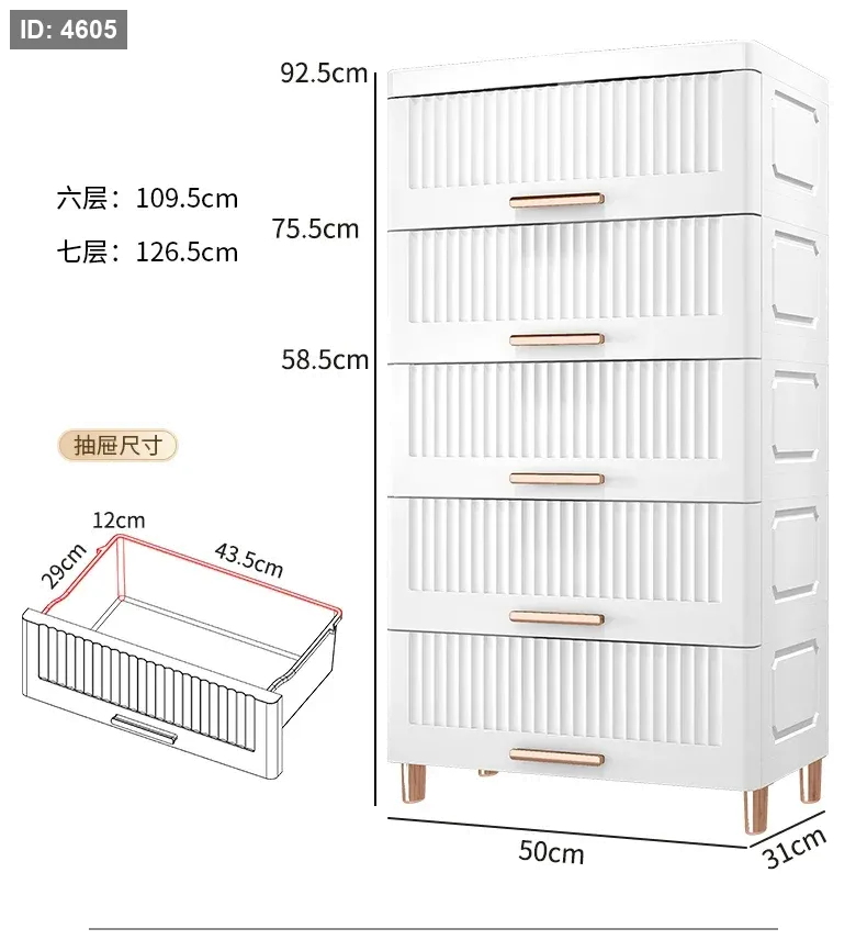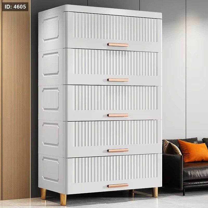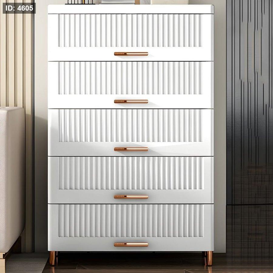 خزانة تنظيم بلاستيكية بـ 5 أدراج بلون أبيض ومقابض ذهبية