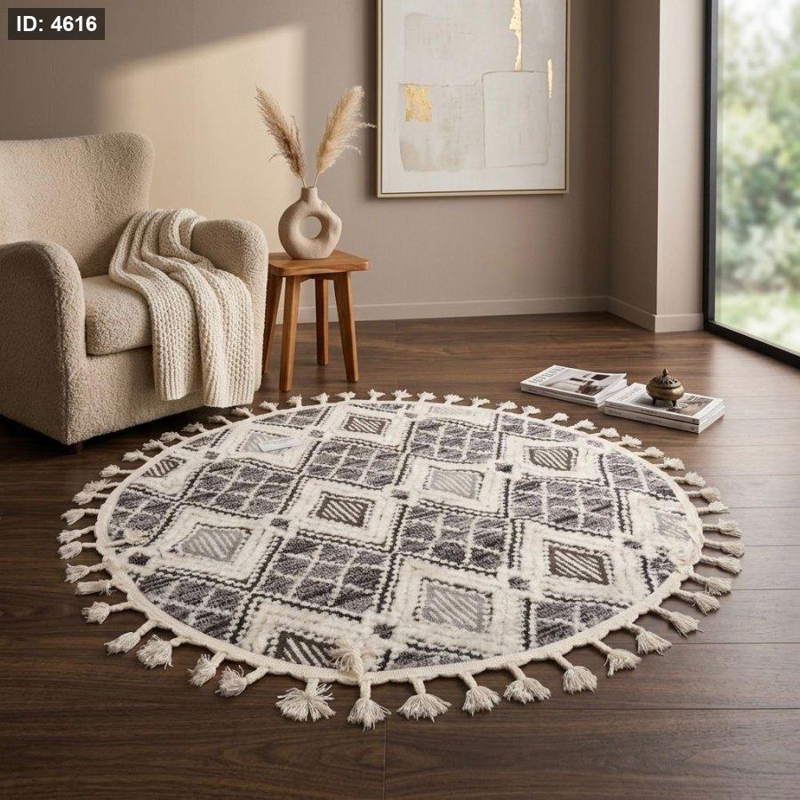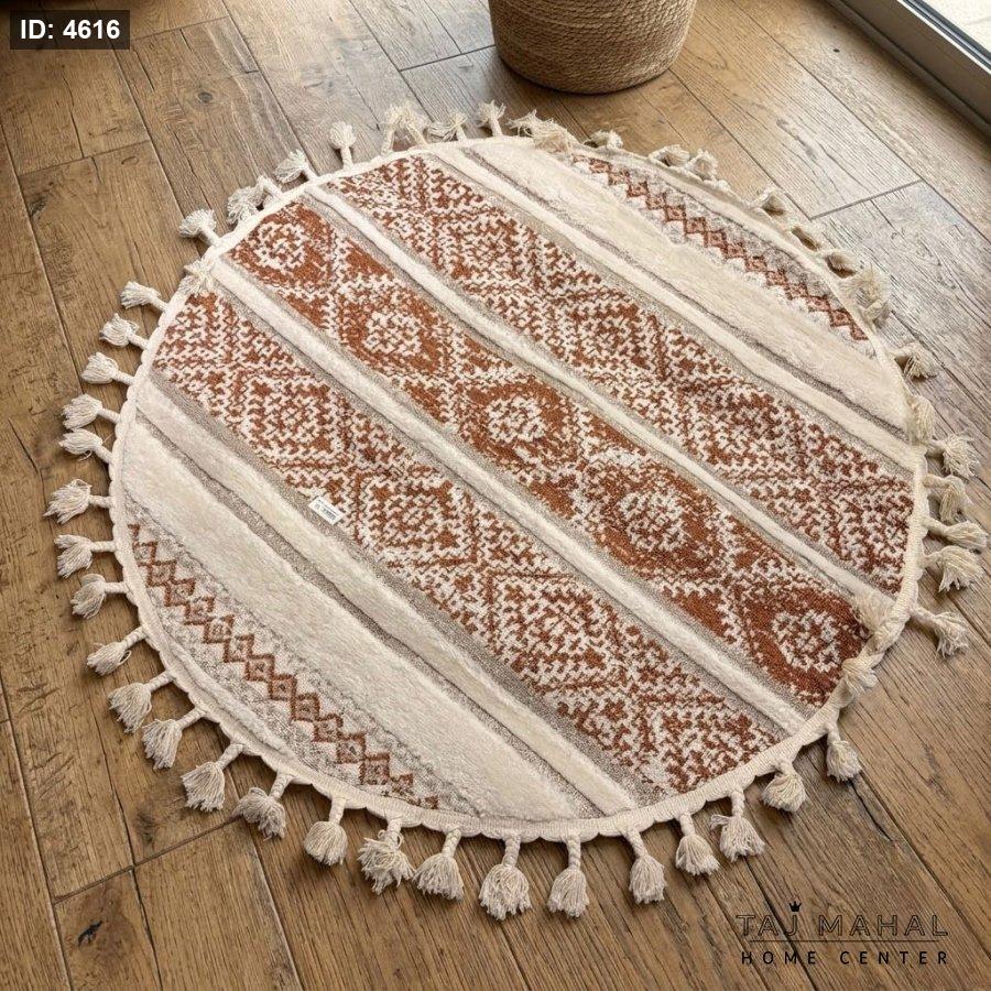 سجادة دائرية بنمط بوهيمي مزينة بشراشيب