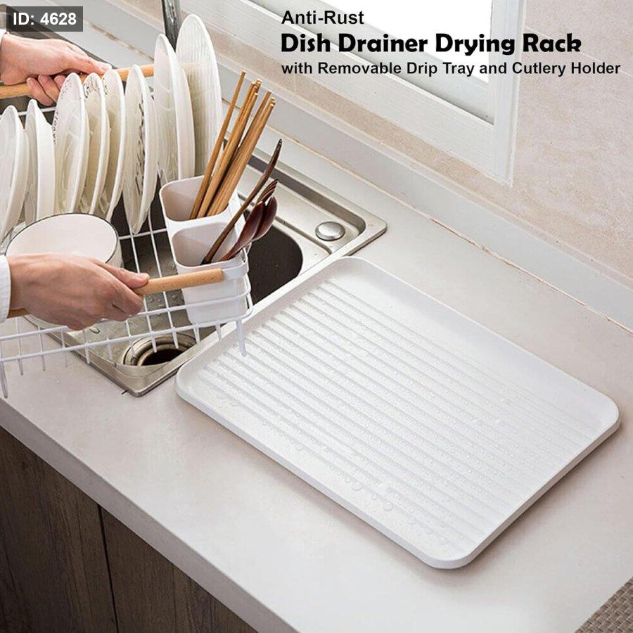 تنظيم متكامل: يحتوي على مساحات مخصصة لتنظيم الأطباق، الأكواب، وحمالة منفصلة لأدوات المائدة (المعالق والسكاكين) لضمان جفافها بسرعة.