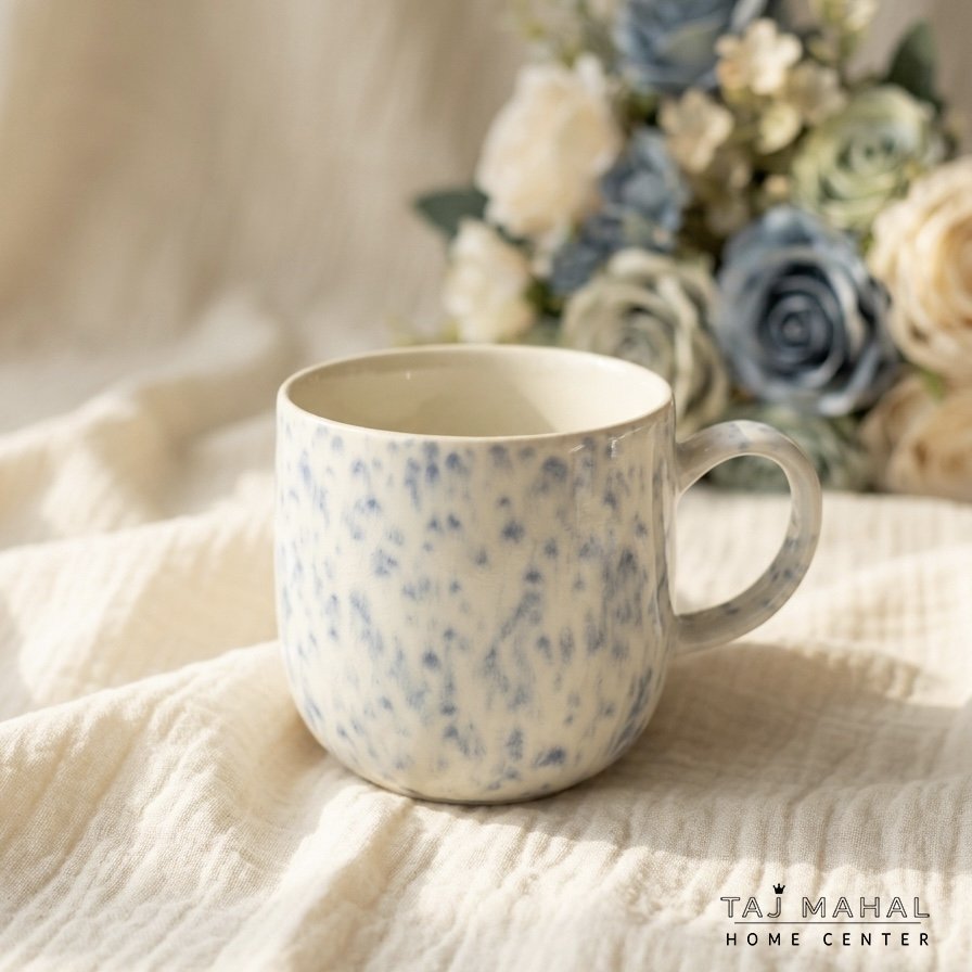 مج بورسلان بنمط منقط باللون الأزرق والأبيض