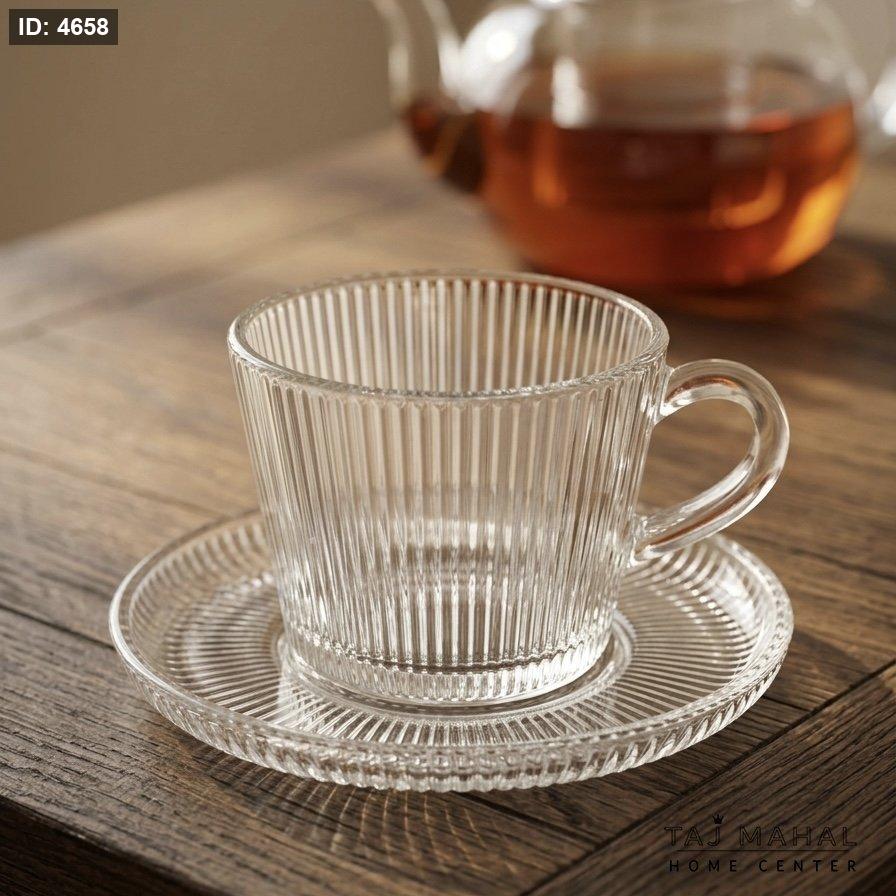 طقم فناجين قهوة زجاجي شفاف مخطط مع صحن ١٢ قطعة