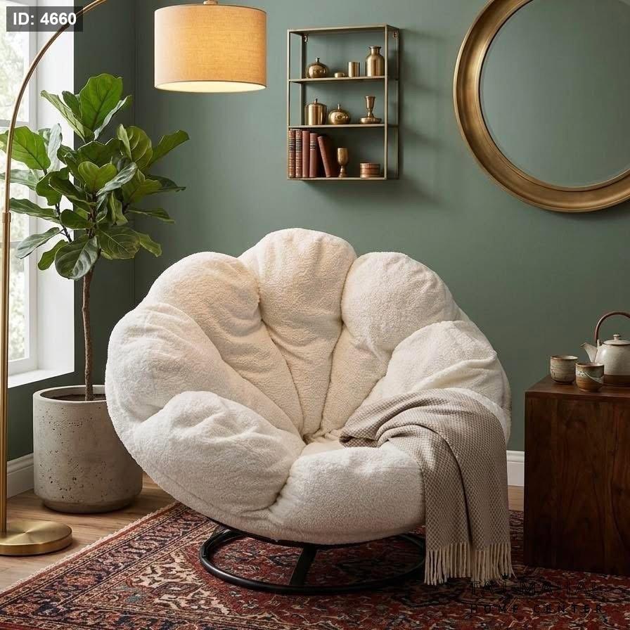 كرسي صوف على شكل وردة بقاعدة معدنية دائرية