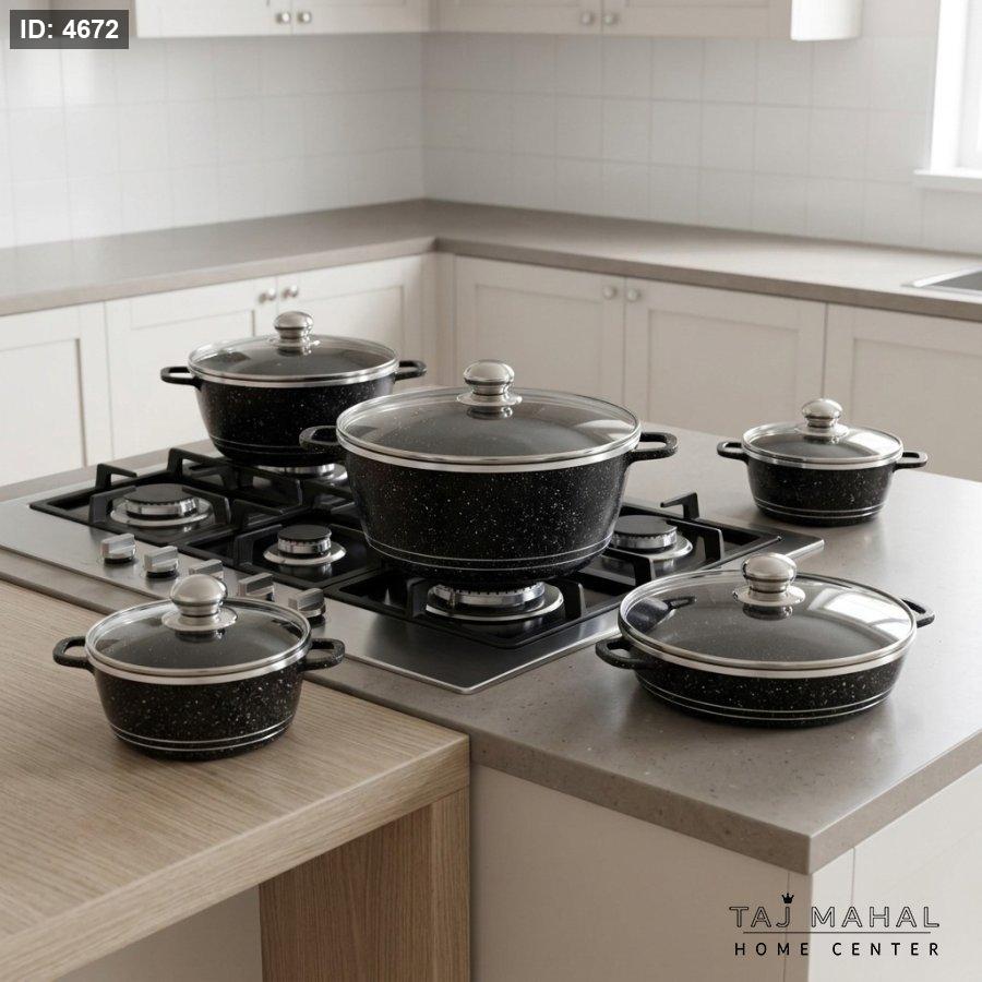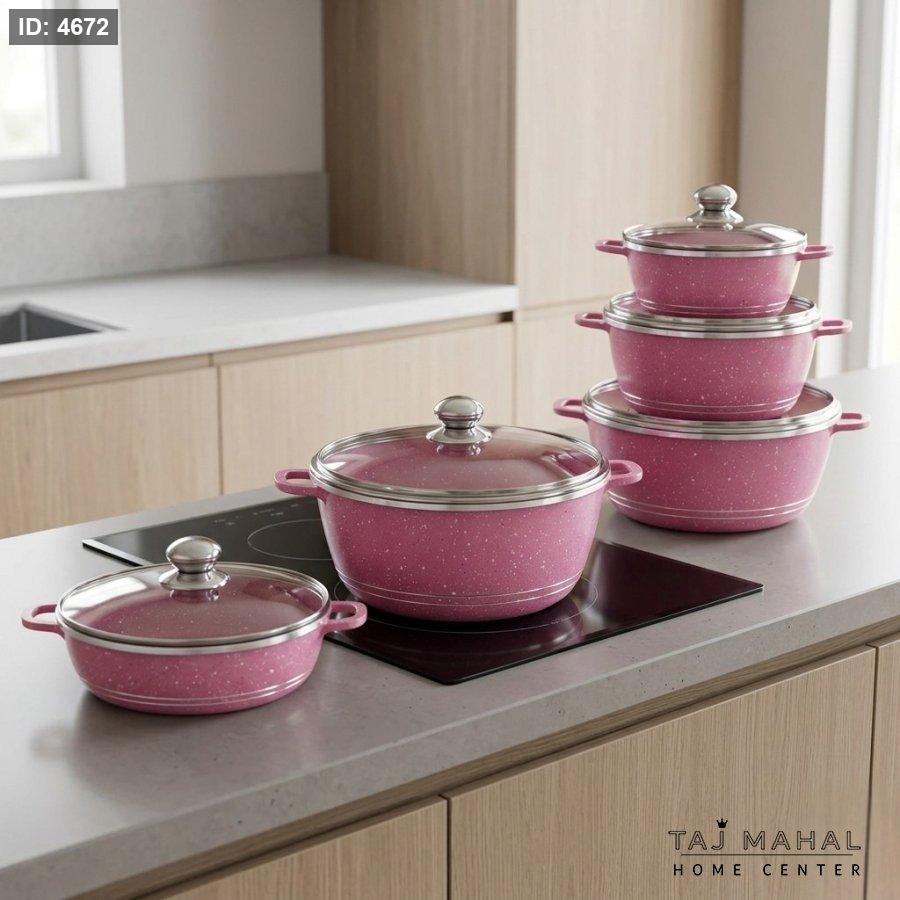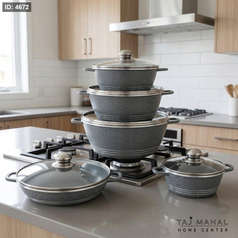 طقم متكامل: يغطي كافة احتياجاتك اليومية بـ 5 أحجام مختلفة (20، 24، 28، 32 سم + قدر منخفض 28 سم).