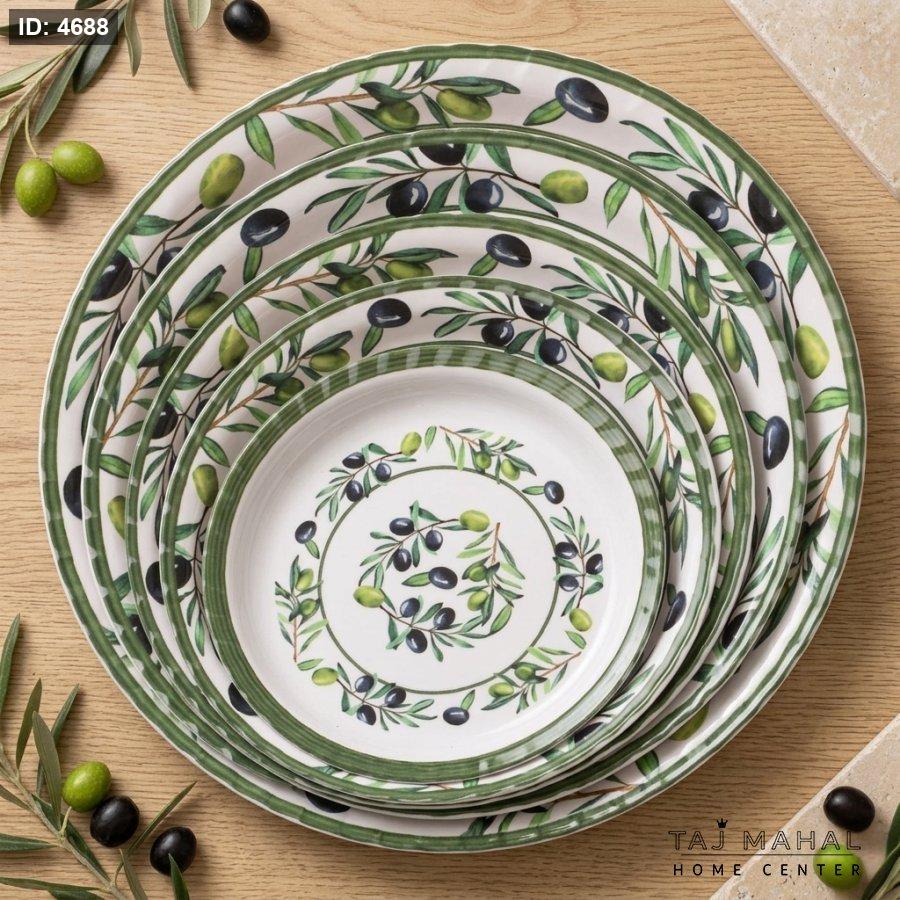 جاط ميلامين مدور ابيض بنقشة الزيتون