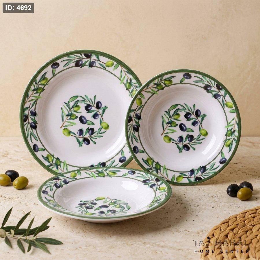 صحن ميلامين مدور ابيض نقشة الزيتون