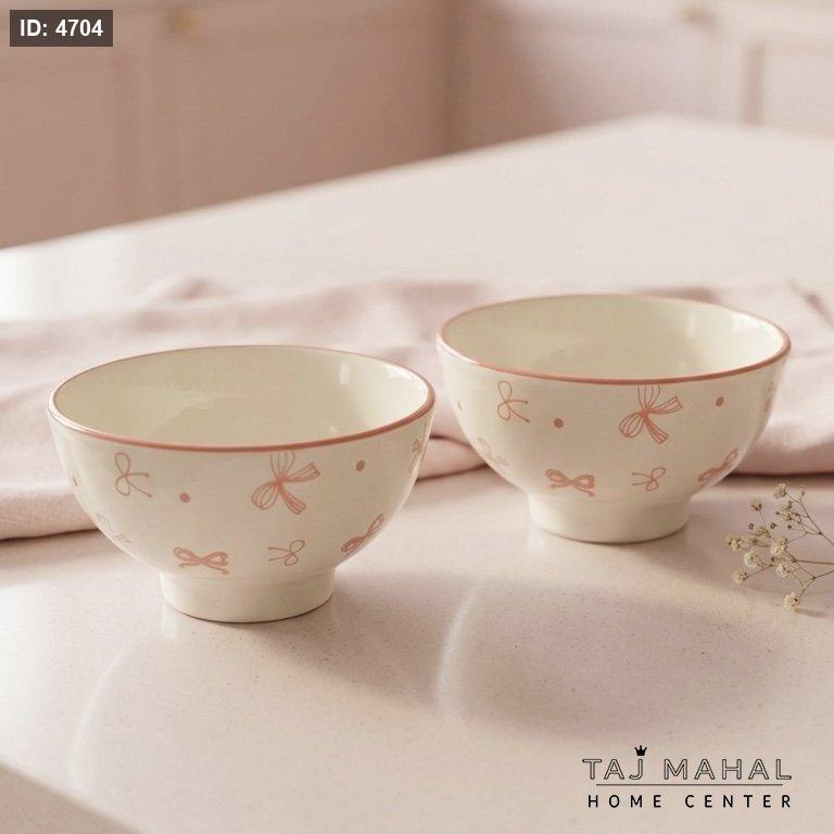 صحنين زبادي بورسلان بنقوش فيونكات وردي