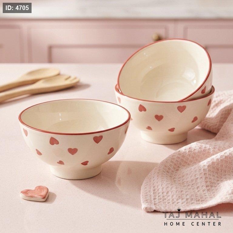 صحنين زبادي بورسلان بنقوش قلوب حمراء