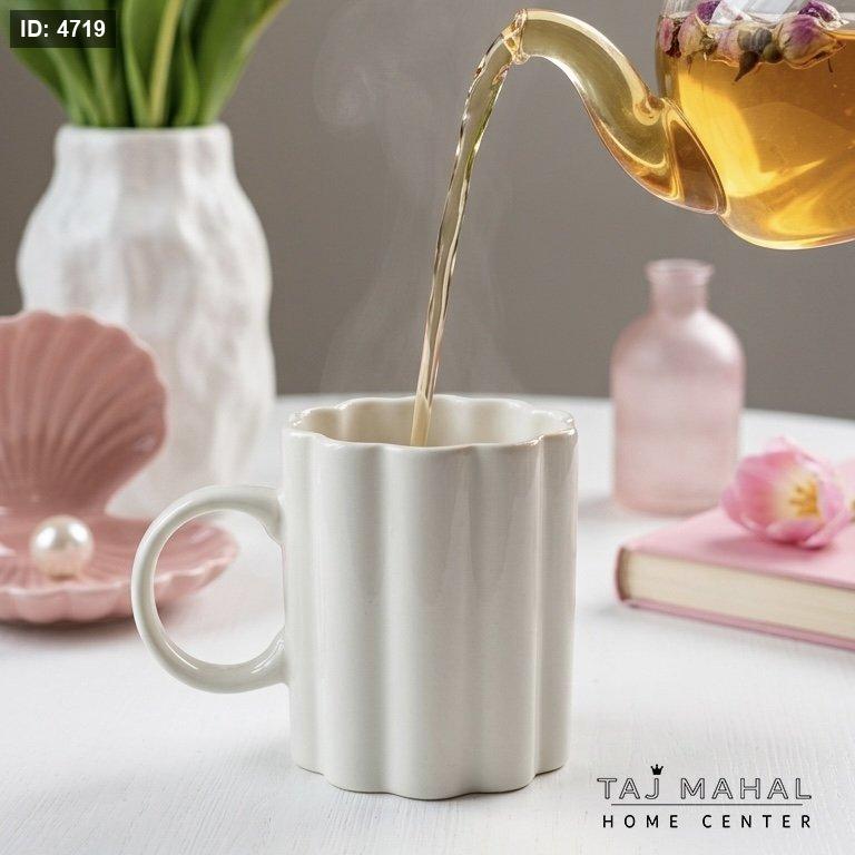 مج سيراميك ابيض بتصميم يشبه بتلات الزهور