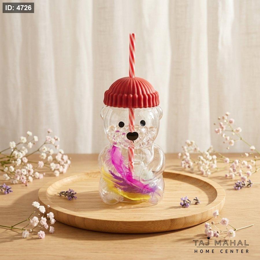 مج زجاجي مع غطاء على شكل دب ومصاصة قابلة لإعادة الاستخدام