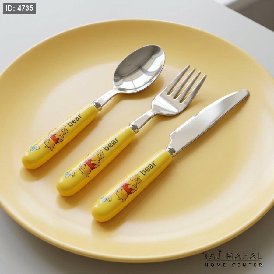 أضيفي لمسة من الدفء والمرح إلى مائدة طفلك مع مجموعة أدوات المائدة المستوحاة من عالم ديزني الساحر. تتميز هذه المجموعة بتصميم شخصية "ويني الدبدوب" (Winnie the Pooh) المحبوبة، مع مقابض صفراء زاهية مزينة برسمة الدب والنحلة، مصممة خصيصاً لتكون مريحة وسهلة الإمساك بيد الأطفال الصغار.