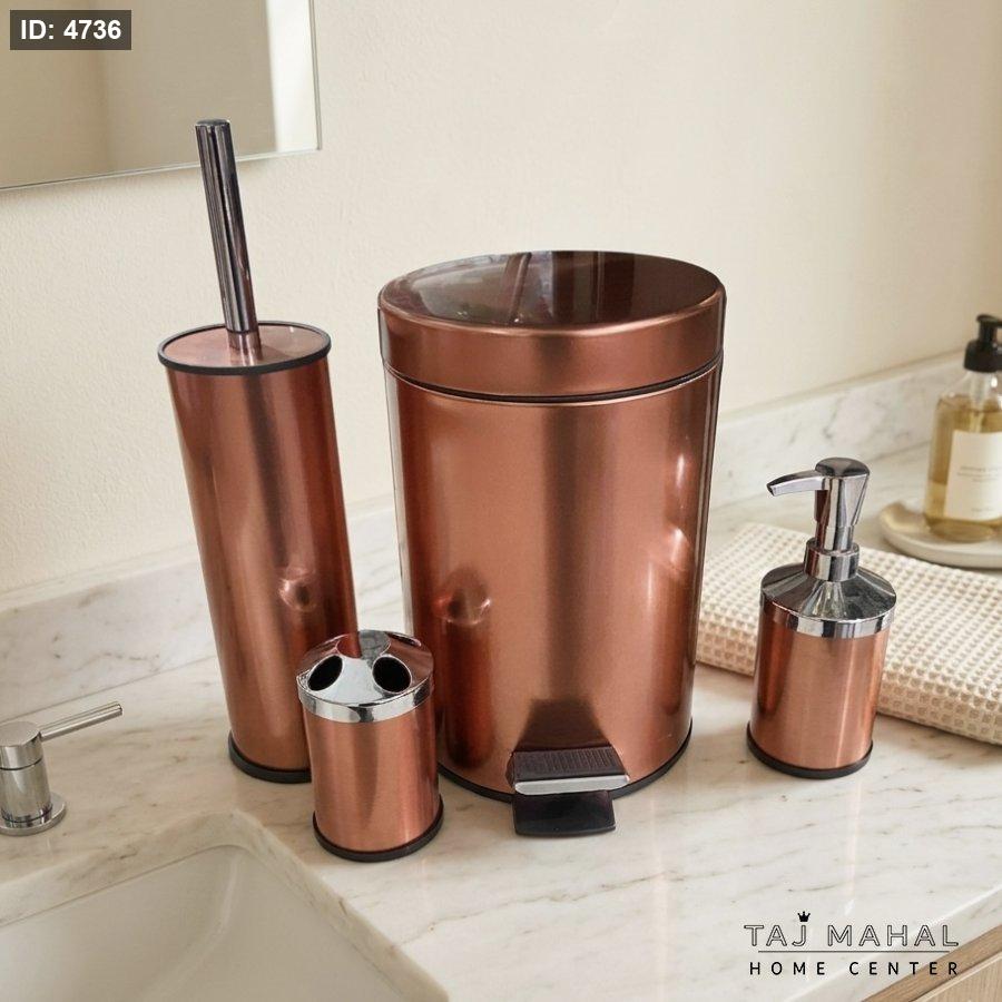 طقم إكسسوارات الحمام المعدني - 4 قطع (لون نحاسي فاخر)