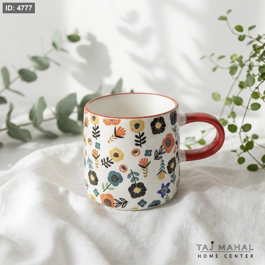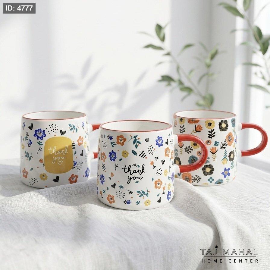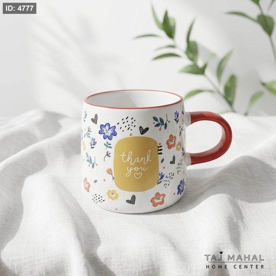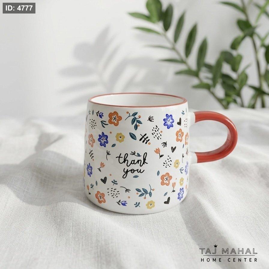 مج بورسلان بنقوش أزهار ملونة وعبارة Thank You