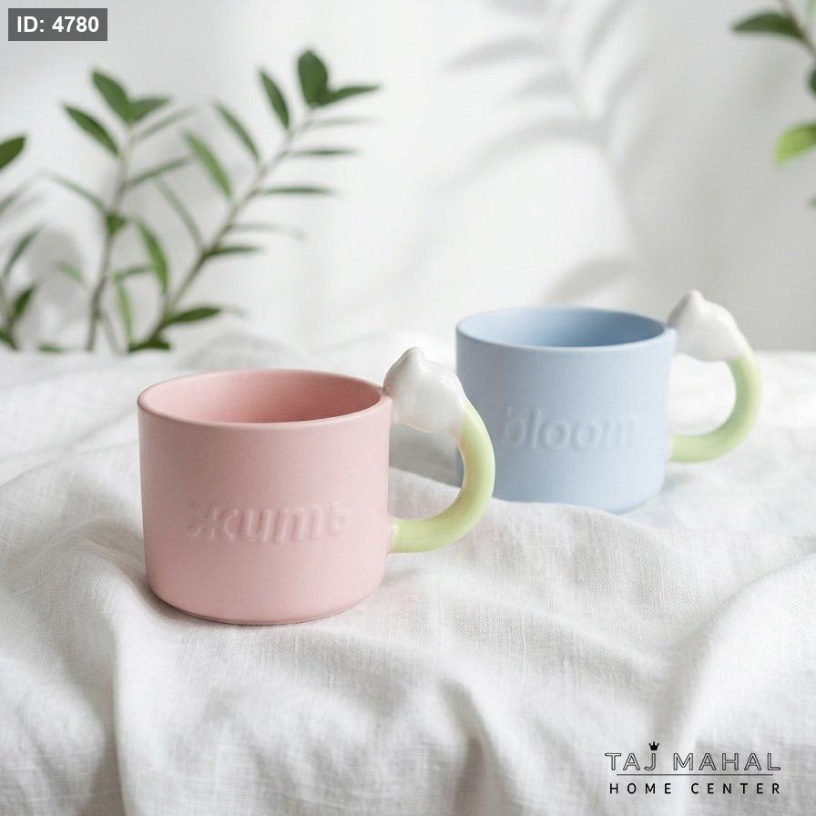 مج بورسلان بألوان باستيل ناعمة مع يد زهرة التوليب