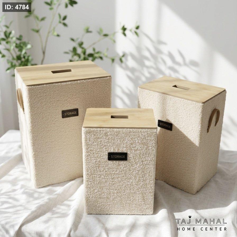 صندوق تخزين مستطيل مغطى بقماش تيدي مع غطاء خشبي