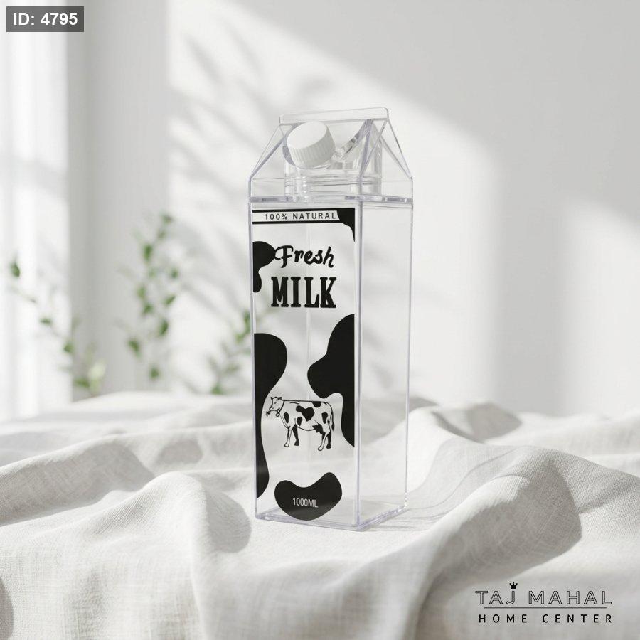 قارورة حليب أكريليك شفافة (تصميم كرتون الحليب) – سعة 1000 مل