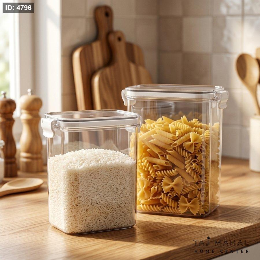 ارتقِ بنظام مطبخك مع حاويات التخزين العصرية المصممة لدمج الأناقة بالعملية. تتميز هذه العلب بجسم شفاف تماماً يتيح لك رؤية المحتويات بوضوح، مع نظام إغلاق ذكي يمنع دخول الهواء والرطوبة، مما يضمن بقاء البقوليات، المكسرات، والمعكرونة طازجة لفترات أطول.
