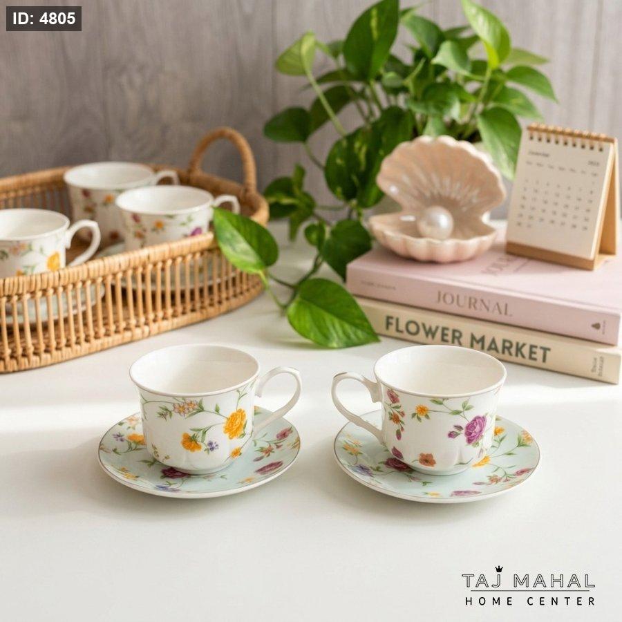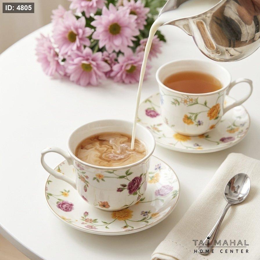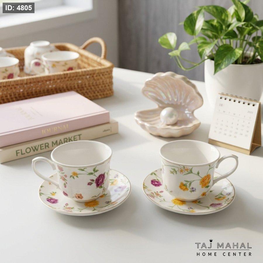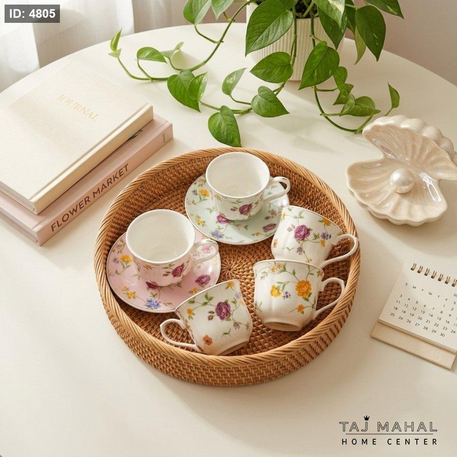 يتميز الطقم بتصميمه المستوحى من الطبيعة مع نقوش زهرية دقيقة تضفي حيوية وأناقة على أوقات القهوة والشاي. خفيف الوزن، متين، ومثالي للاستخدام اليومي أو للمناسبات الخاصة وتجهيزات العرائس.