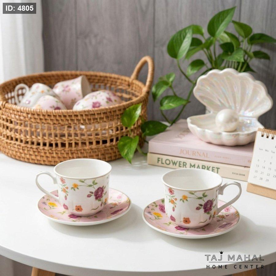 طقم فناجين بورسلين بنقوش زهرية أنيقة – 12 قطعة