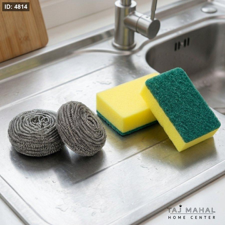 طقم ليفتين للجلي وسلكتين معدنيتين