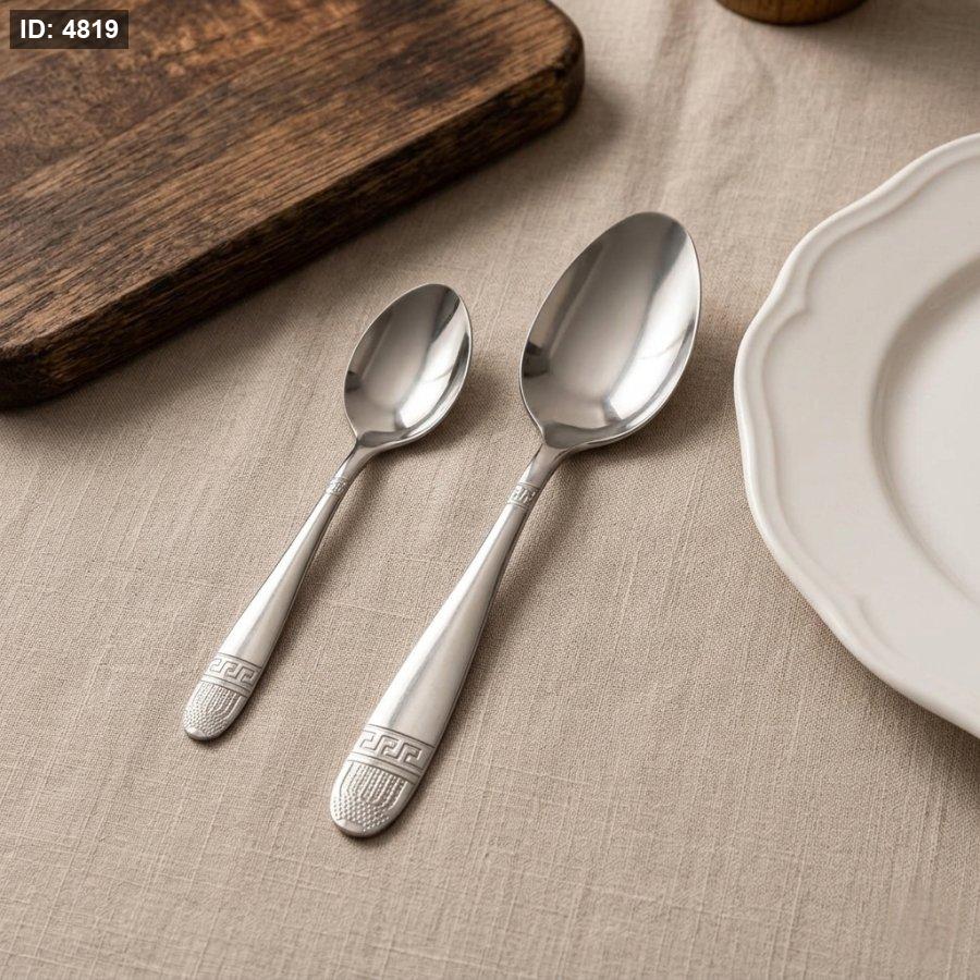 طقم معالق ستانلس ستيل مع نقشة المفتاح اليوناني 12 قطعة