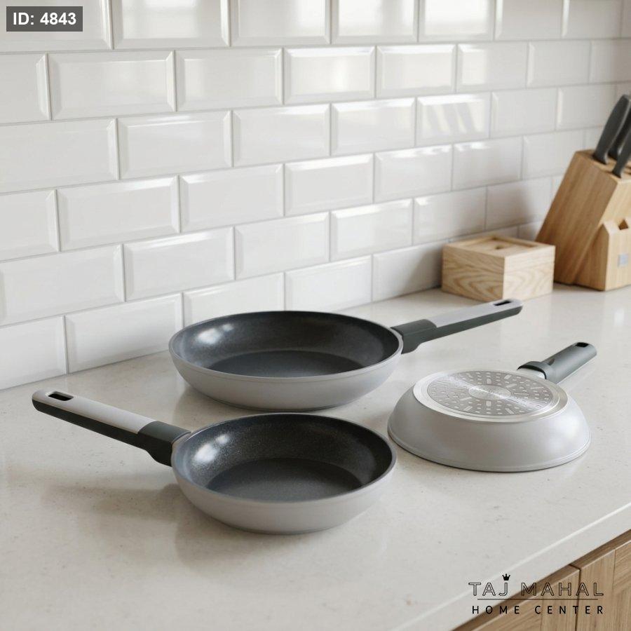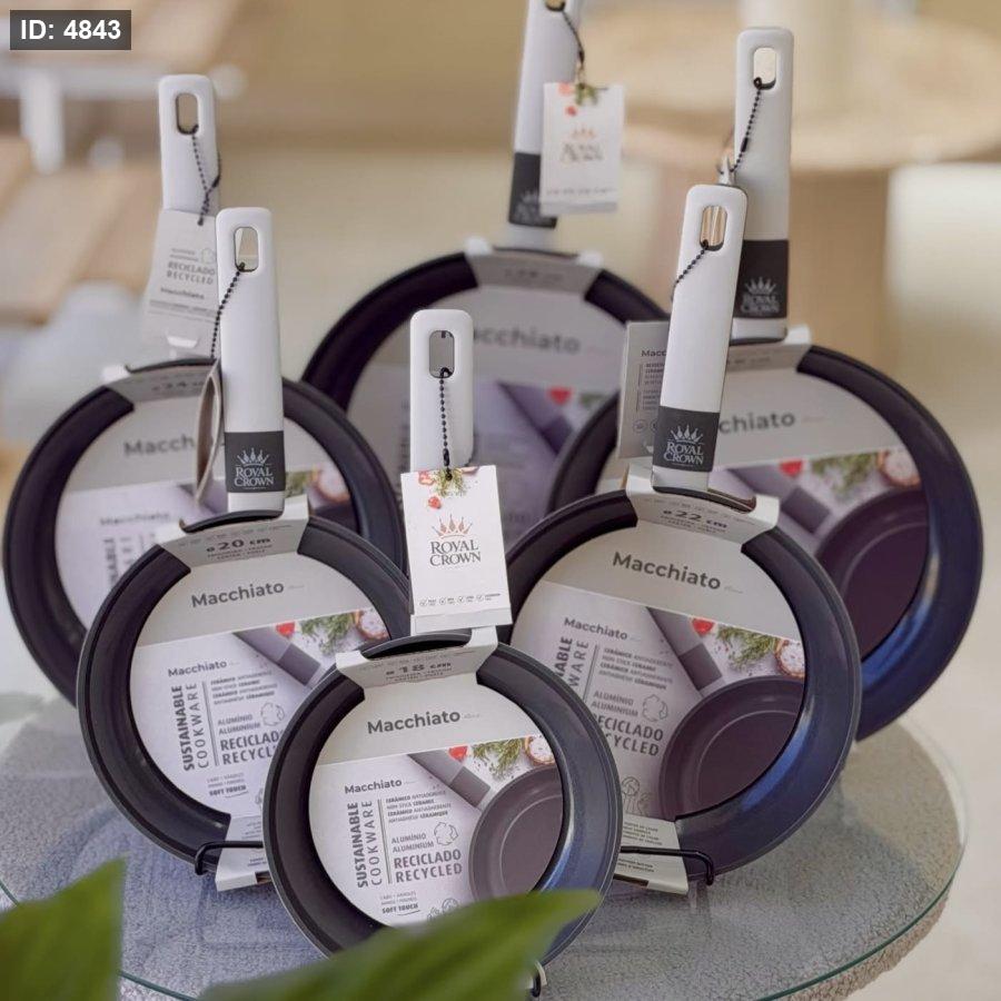 ارتقِ بتجربة الطهي مع طقم مقالي Macchiato من Royal Crown. صُممت هذه المجموعة لتجمع بين الأناقة الفائقة والأداء العملي المستدام. بفضل طلاء السيراميك الصحي المانع للالتصاق وهيكلها المصنوع من الألمنيوم المعاد تدويره، توفر لك توزيعاً مثالياً للحرارة وطهياً صحياً بأقل كمية من الزيوت. متوفرة بـ 6 أحجام متنوعة لتلبي كافة احتياجاتك، من تحضير بيض الصباح وحتى الوجبات العائلية الكبيرة